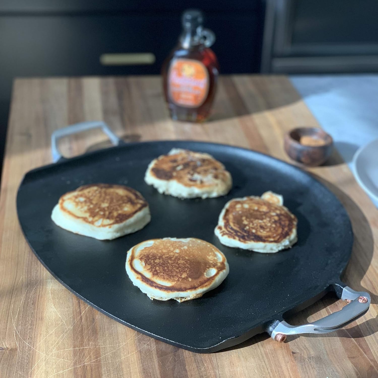 Outset Cast Iron Grill Skillet and Pan with Forged Handles for Pizza, Eggs, Pancakes, Burgers and Steaks, 14-inch, Black