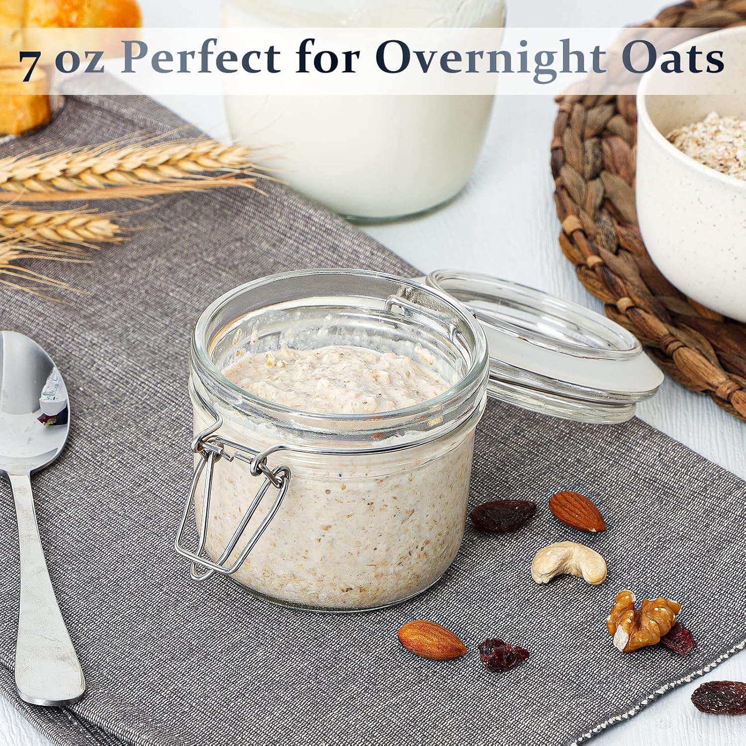 - Airtight lids with silicone seal keep contents fresh; includes 3 extra silicone gaskets for double stacking jars