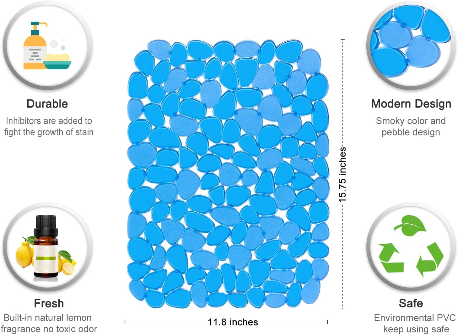 - Modern Design and Practical Functions: Unique pebble design, this sink mat is made of heavy, flexible PVC material, it can stay put at the sink bottom to protect sink surface from scratches and provide cushion to dishes while washing.