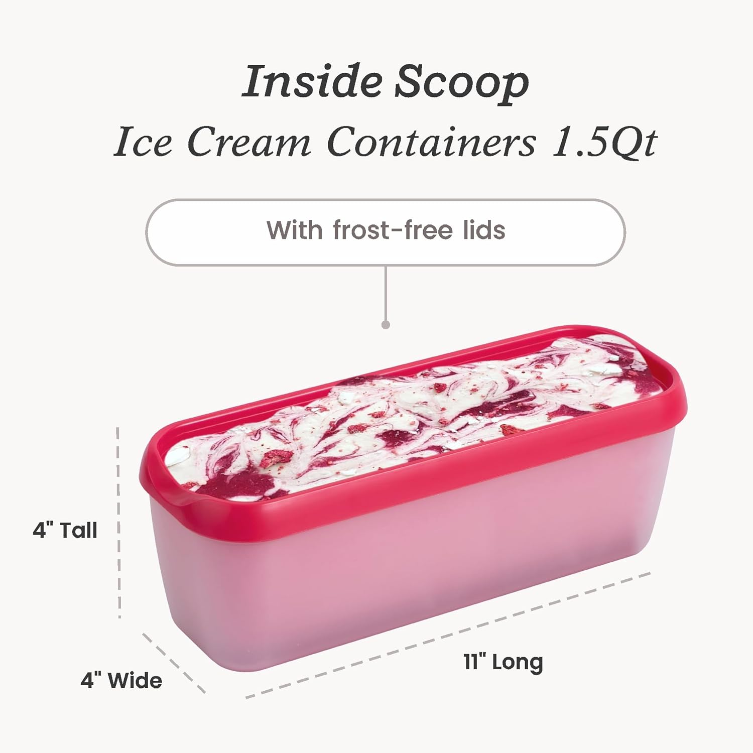 - 1.5 Qt Easy-Scoop Slimline Ice Cream Freezer Containers: Long, slim design for easy storage and easy scooping, double wall insulation keeps ice cream cold while serving, and frost-free lids help prevent ice crystals.