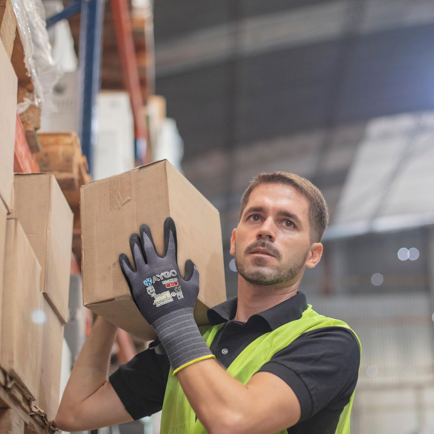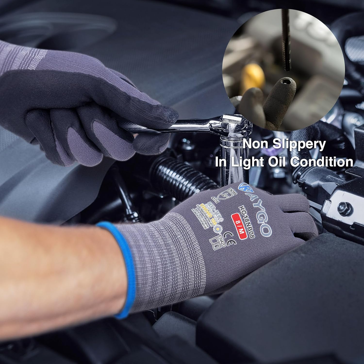 KAYGO Safety Work Gloves MicroFoam Nitrile Coated, 12 Pairs KG18NB,Seamless Knit Nylon Glove for Men and Women, Ideal for Automotive,Warehouse,Construction (2X-Large,Gray)
