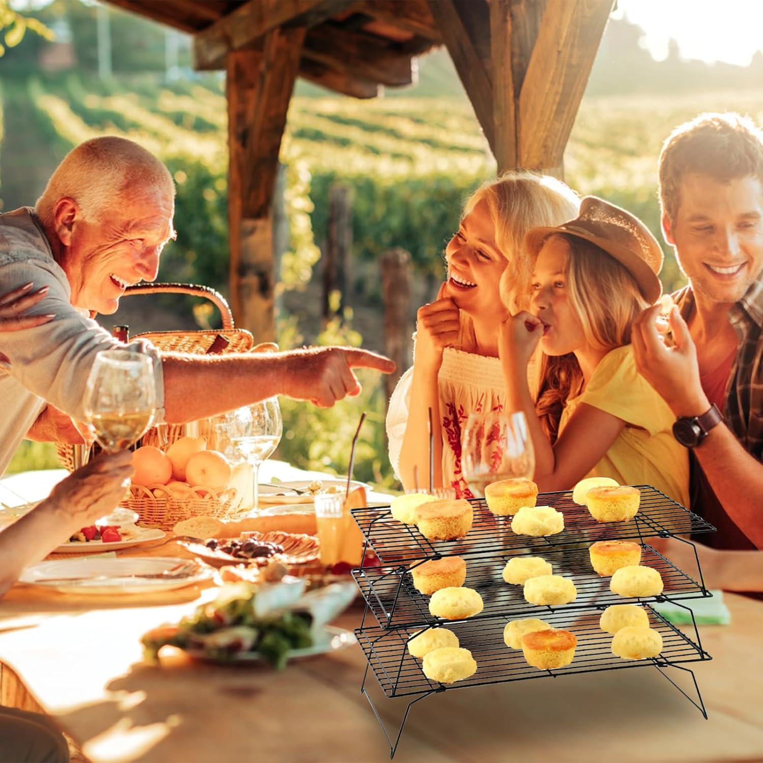 ShellKingdom Cooling Racks, Stainless Steel Non-Stick Baking Racks And Oven Safe Wire Cool Racks for Cookies, Cakes and Baking,3-Tier,Foldable