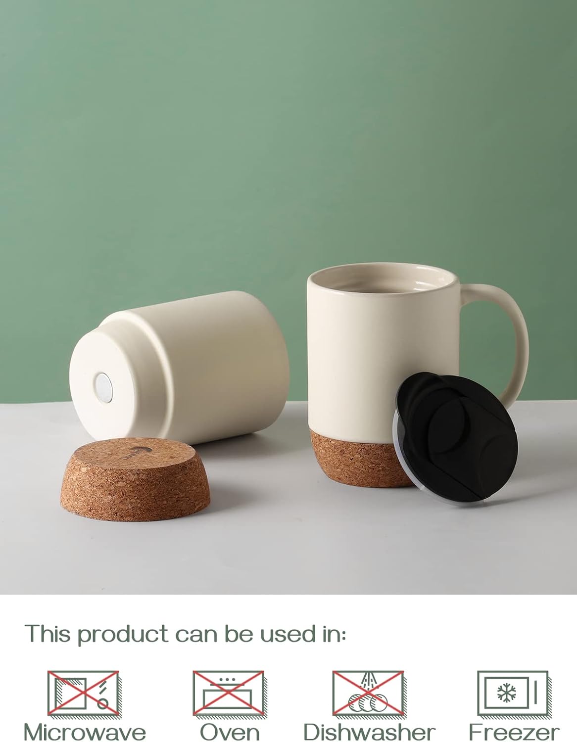 - Warning Tips: Please notice that mugs is not microwave and oven safe. And the bottom of our mugs is made of cork, so DON’T put the cork in the dishwasher because it is not safe. Please remove the cork bottom before washing the mug in the dishwasher, or you can clean it easily without coffee stains by handwash. After cleaning, assemble the cork to the bottom of the mug and you can continue to use it.