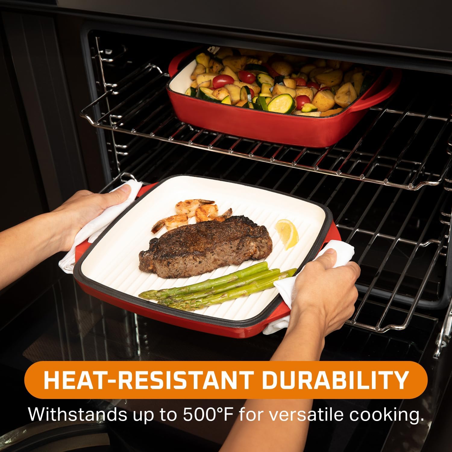 - Oven-Ready and Heat Resistant: Crafted for versatility, this cast iron cookware withstands temperatures up to 500°F; transitions smoothly from stovetop to oven, offering flexible meal preparation