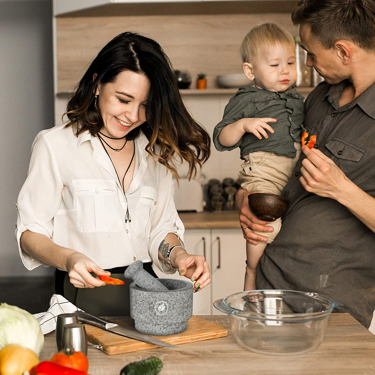 - Practical Design for Home Cooks: This granite mortar includes a spoon and silicone lid/placemat to protect countertops. Keep food fresh longer with this durable grinding bowl and pestle set