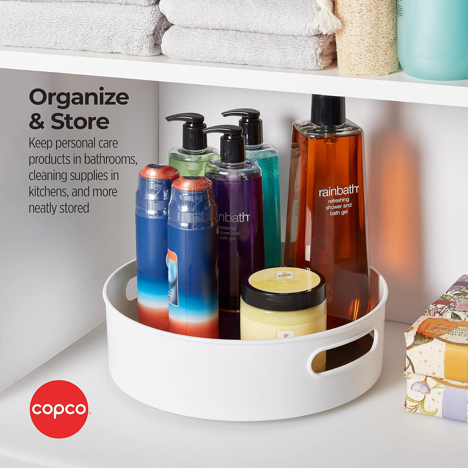 - EASY ACCESS: Smooth-glide Lazy Susan rotates so you can quickly reach what you need, and features handles for easy transport