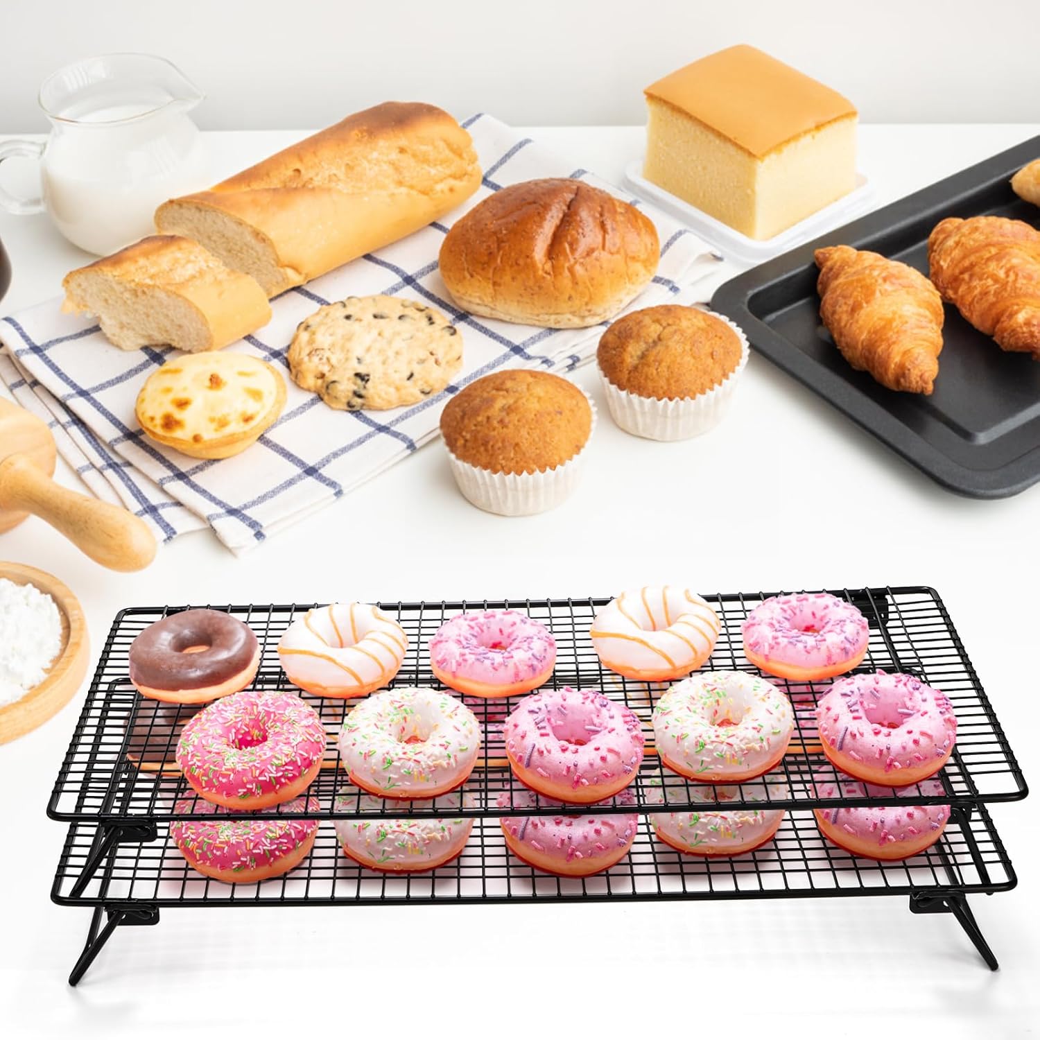 Kingrol 2-Piece Cooling Rack with Collapsible Folding Legs - for Cooking, Roasting, Drying, Grilling (Black)