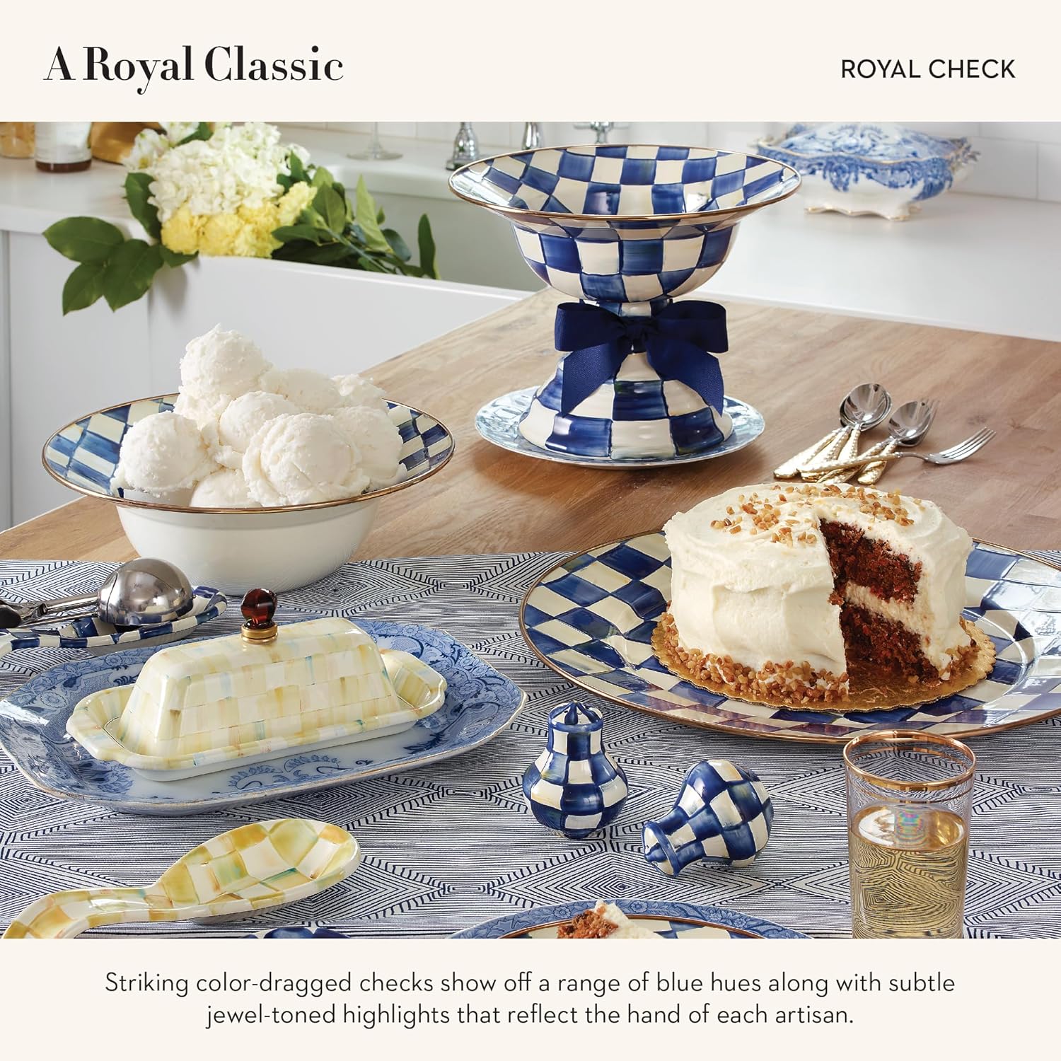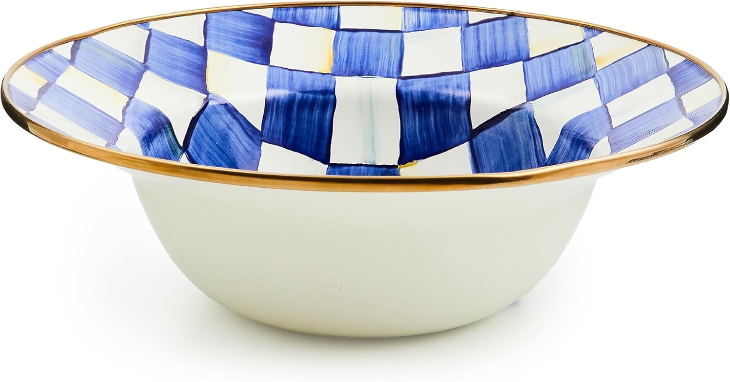 - ENTERTAINING & PARTY ESSENTIAL: The Royal Check Enamel Serving Bowl features our regal hand-painted blue-and-white checks over a hand-glazed steel underbody and has a bronzed stainless-steel rim.
