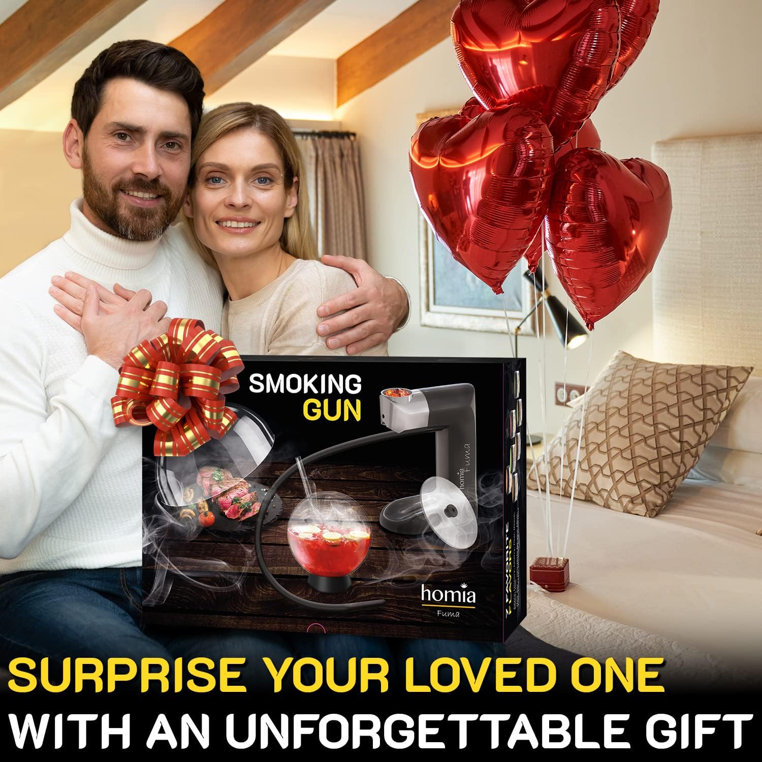 - MULTIPURPOSE & GREAT GIFT Add a delicious smoky flavor to your food and drinks in just no time. Portable, convenient and easy to use Food Smoker will produce cold smoke to your favorite food. Excellent gift choice for Father`s day and other occasions: Birthday, Father`s Day, Anniversary, Valentine's Day, Thanksgiving, Christmas, etc.