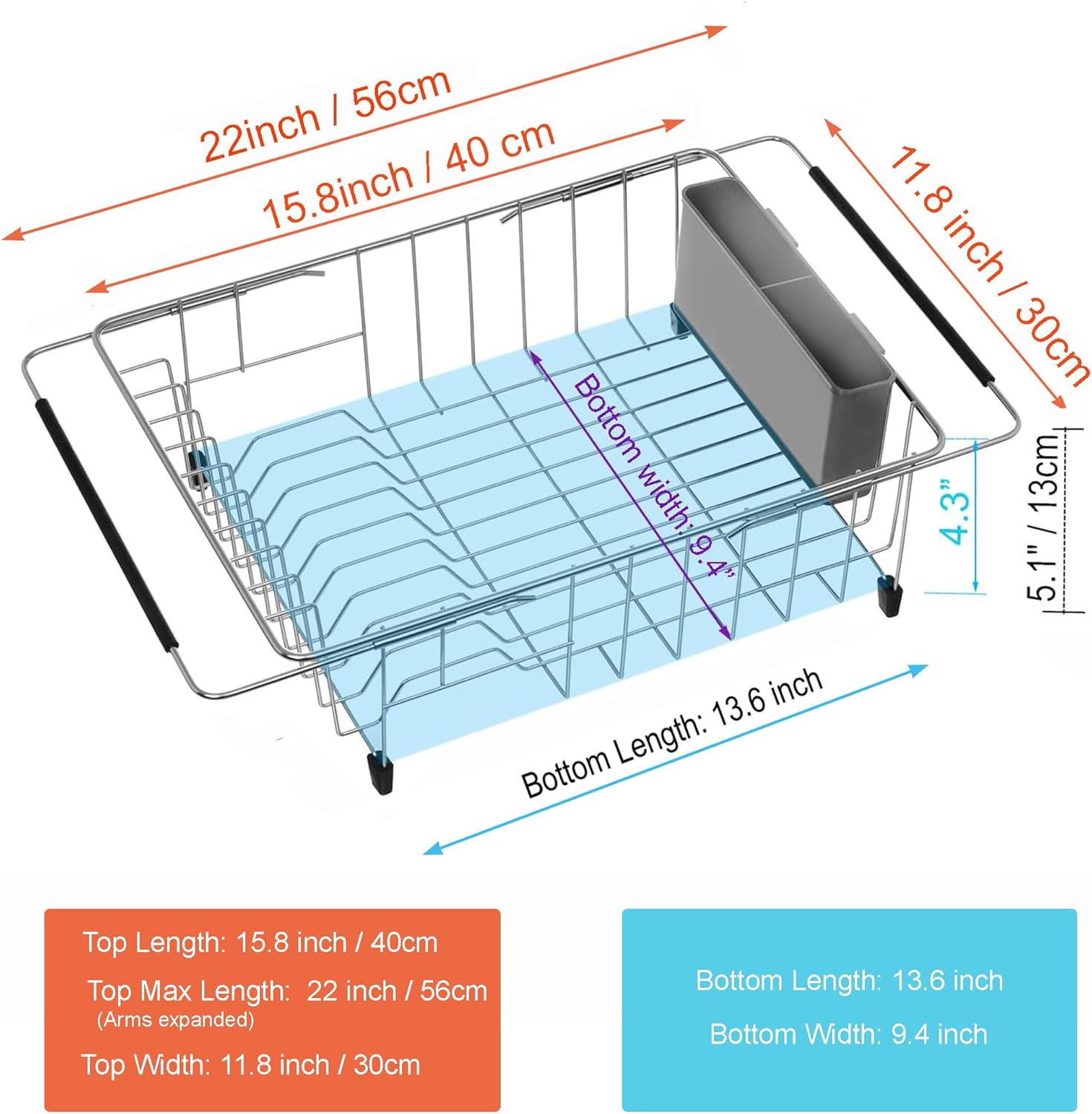 - ✔ EXTENDABLE & SUITABLE for Different Size Sink: The unit (collapsed) measures 15.8"(40cm) L x 11.8" (30cm) W x 5.1"(13cm) H, expands from 15.8" to 22.2" length to make it handy to place over a larger sink, fit your sink which is 16 to 22 inches length.