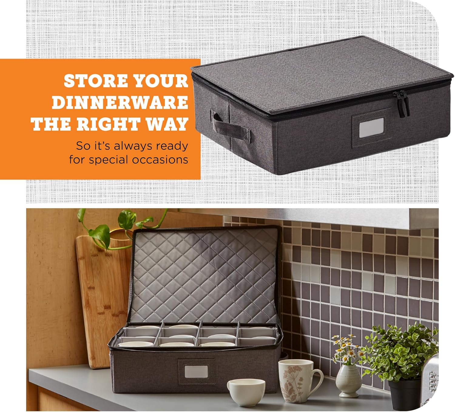 storageLAB Cup and Mug Storage Containers, Hard Shell Storage Case with Felt Dividers for Cups, Mugs, Dishes, and Glasses, Ideal for Kitchen Organizing and Moving Supplies - 1 Pack, Gray