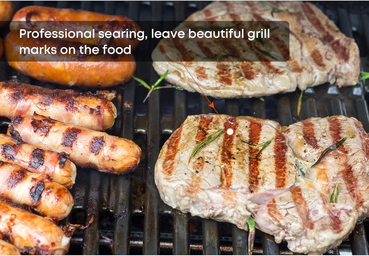 - 【SAFETY】Free of Sharp Edges, The end of the rods with a round design that don't hurt your hands. 【SEAR MARKS】Provide more evenly heat and retain superbly, help to produce professional sear marks on the food. Make your food more appealing.