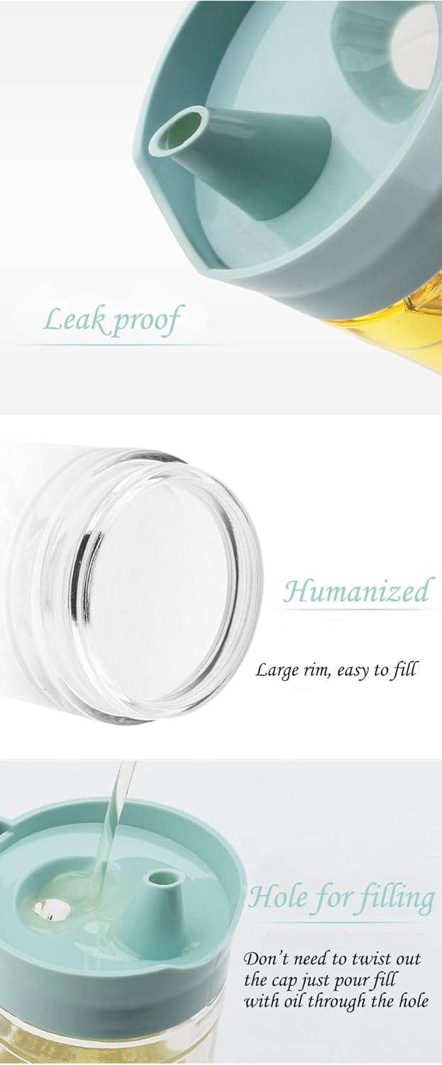 - Leak and dust proof - no oil dripping down while pouring and the dispenser spout is clean! Dust-proof cap for the – to keep the pour spout clean and hygeian.