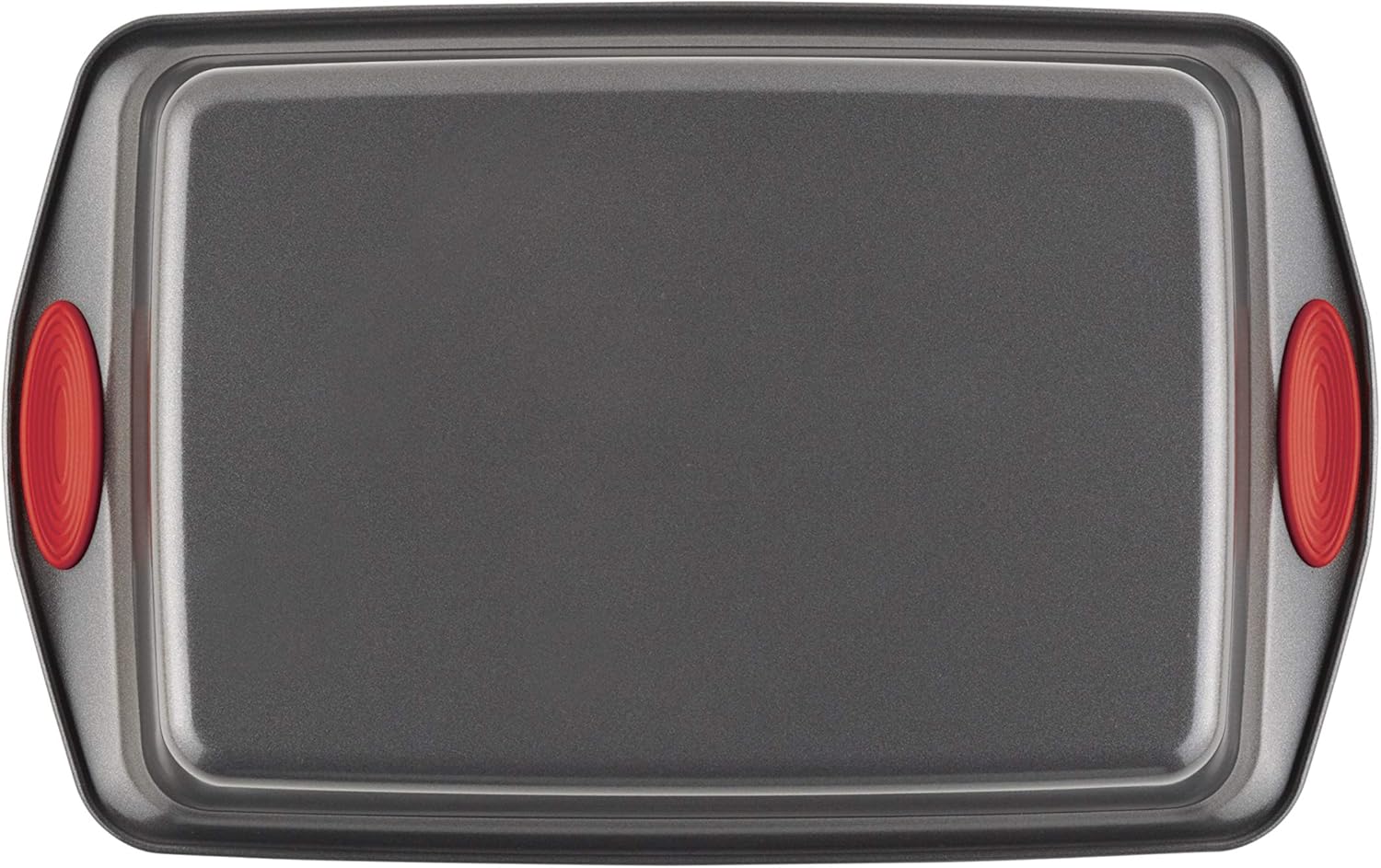 Rachael Ray Yum-o! Nonstick Baking Pan With Grips/ Nonstick Cake Pan with Grips, Rectangle - 9 Inch x 13 Inch, Gray with Red Grips