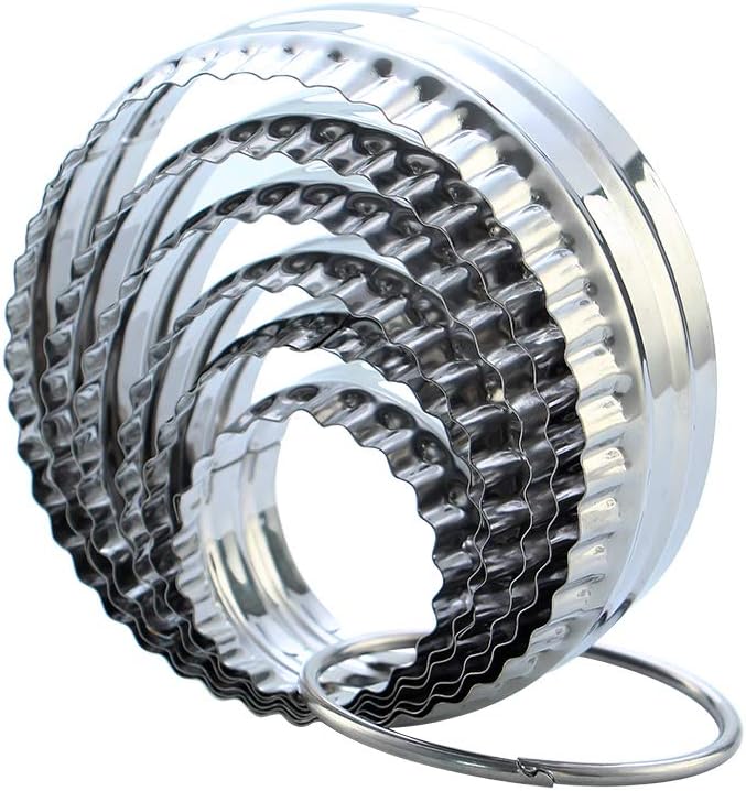 - β The Fluted Cookie Cutter Set including 6-piece double sided round cookie cutters. Each cutter has a fluted side and a plain side.