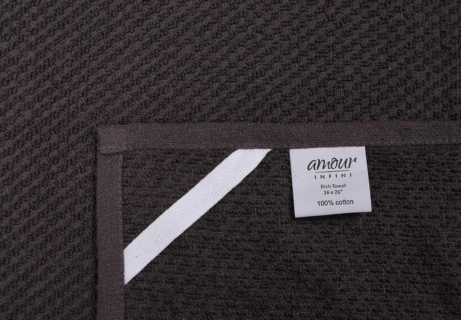 AMOUR INFINI Kitchen Towels Pack of 4 - Absorbent, Quick Drying Premium Cotton Tea Towel - Kitchen Linens 16x28 Inch Dish Towels with Hanging Loop (D.Grey)