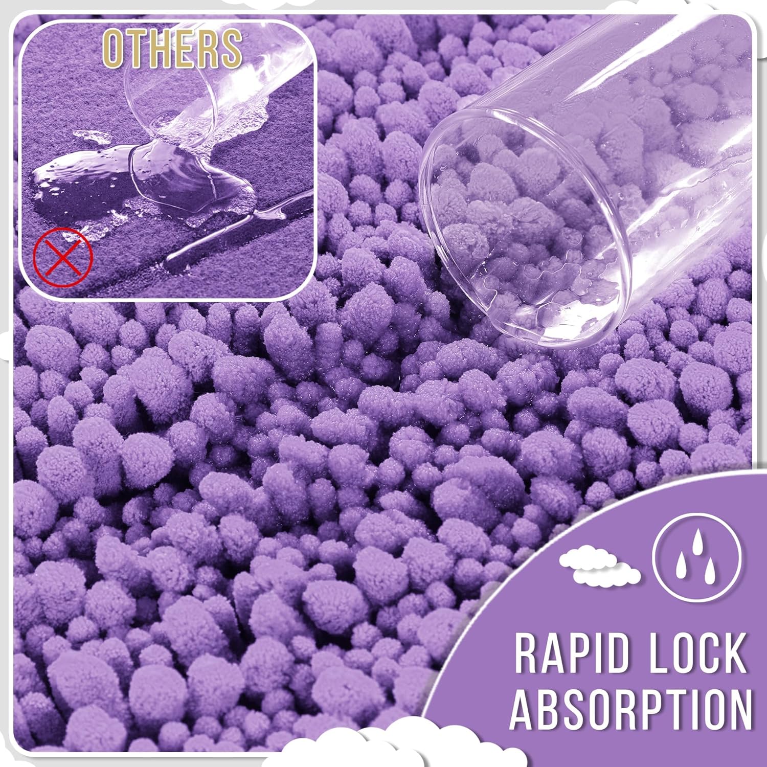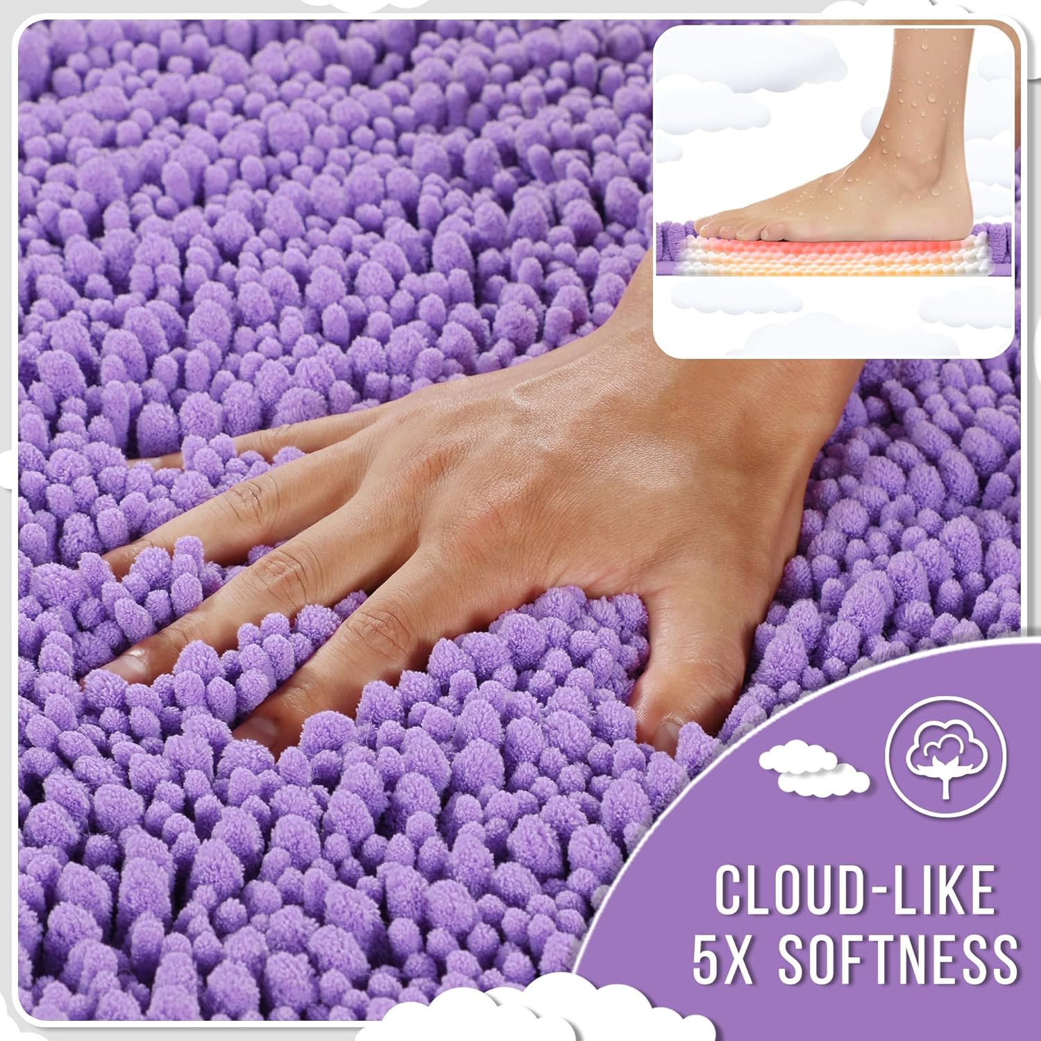 Yimobra Bathroom Rugs Non Slip Washable 24x17 Inch - Ultra Soft Absorbent Chenille Bath Mat, Quick Dry Shaggy Floor Carpet for Tub Shower, Lavender Home Decor Accessories