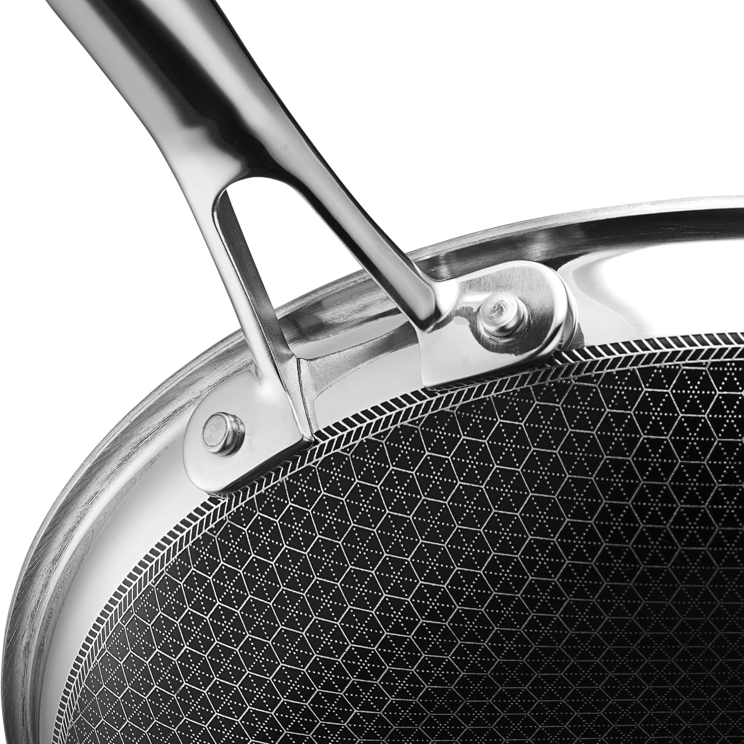 - HexClad’s patented Hybrid technology features a laser-etched hexagonal nonstick surface that combines both stainless-steel and our TerraBond ceramic coating for the ultimate sear and easy cleaning.
