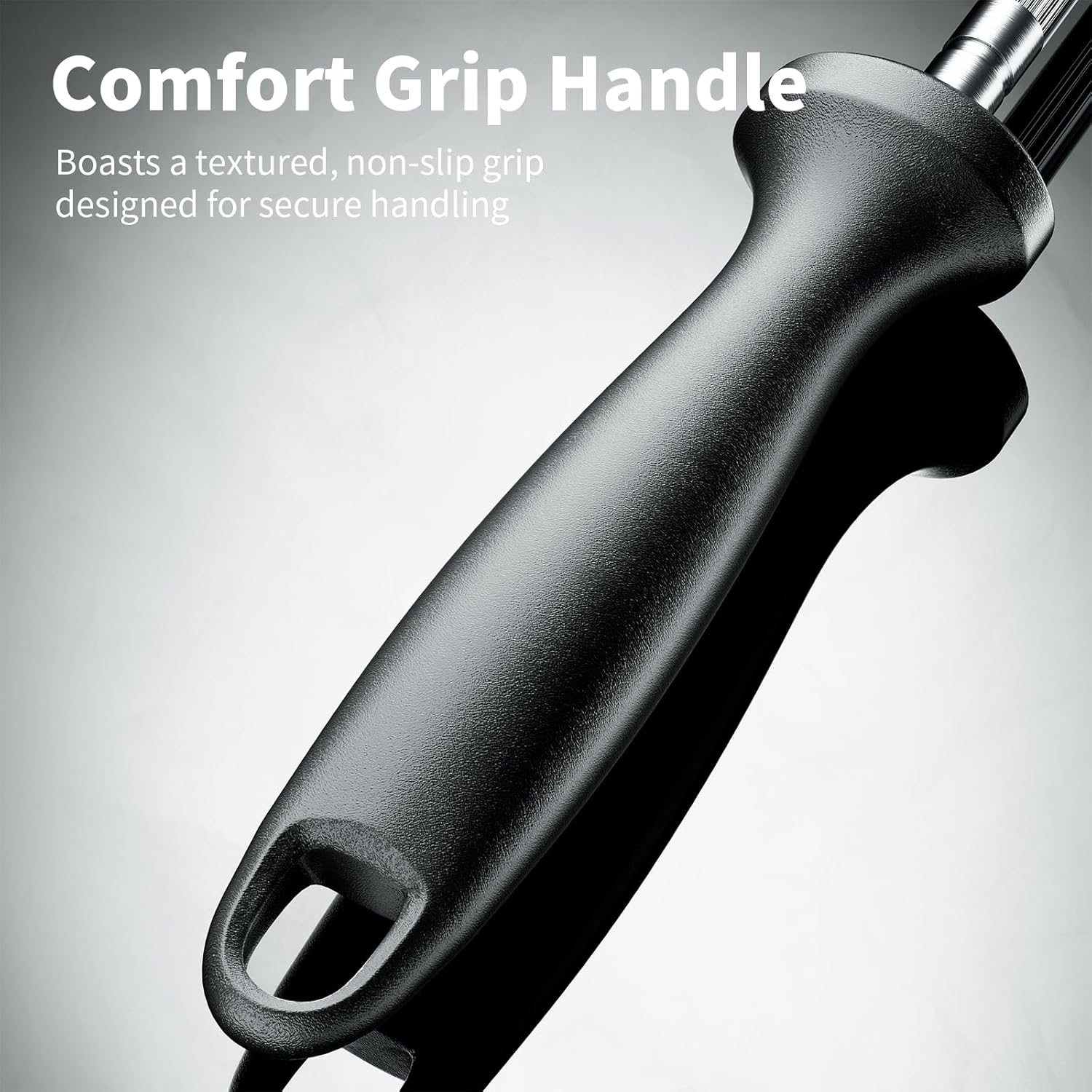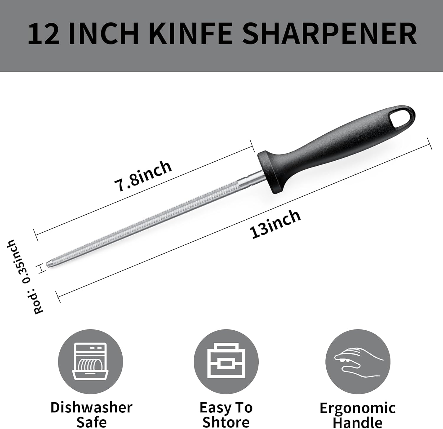 - Ergonomic Handle- Ergonomic handle design with PP material, non-slip easy to grip, let your sharpening is more convenient. Overall measures 13 in. L, 7.8 in the rod.