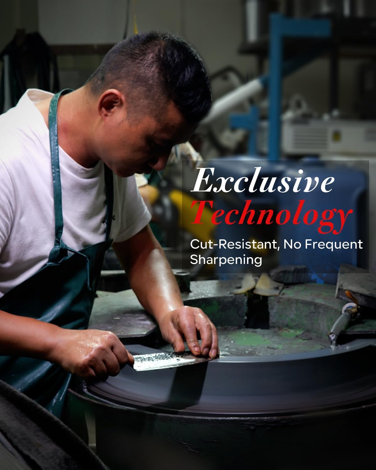 - FAMCüTE Expertise - Our japanese santoku knife are made from 5 layers of 9CR18MOV steel, combining traditional forging techniques with advanced technology. Each sharp knife undergoes a meticulous 60-day production process, including precise quenching, vacuum nitriding, and enhanced oxidation-resistant anti-rust technology, ensuring every cut remains sharp and durable.