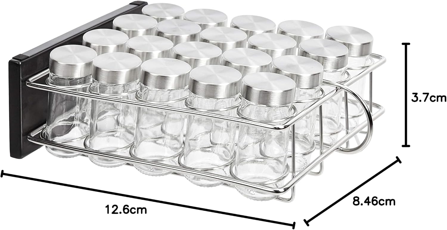 - COMPLETE SPICE ORGANIZATION: These spice racks include silver screw-on tops for the jars so your spices are well stored and easily identifiable