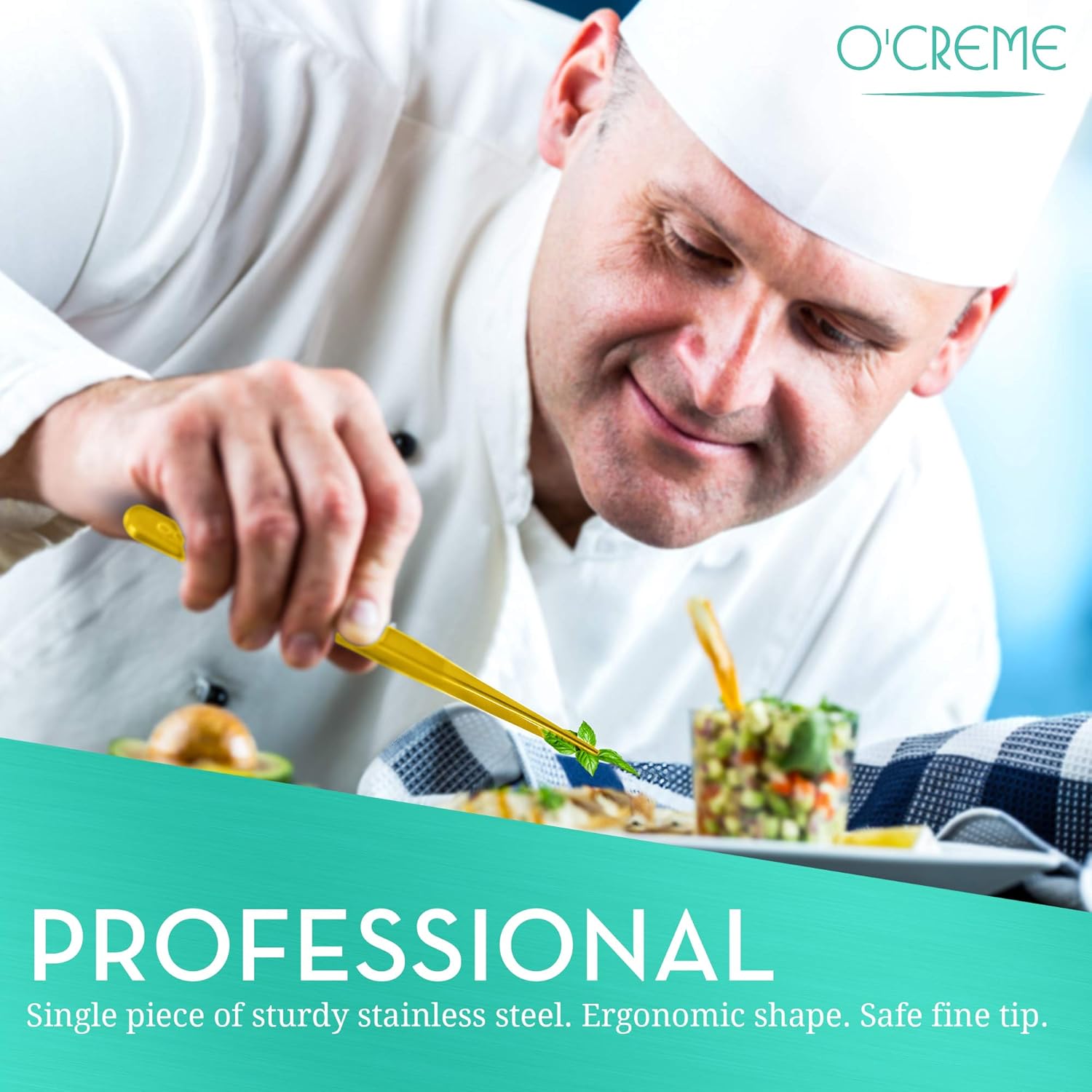 O'Creme Stainless Steel Precision Kitchen Tweezer Tongs 6.25" with Fine Tip (Gold)