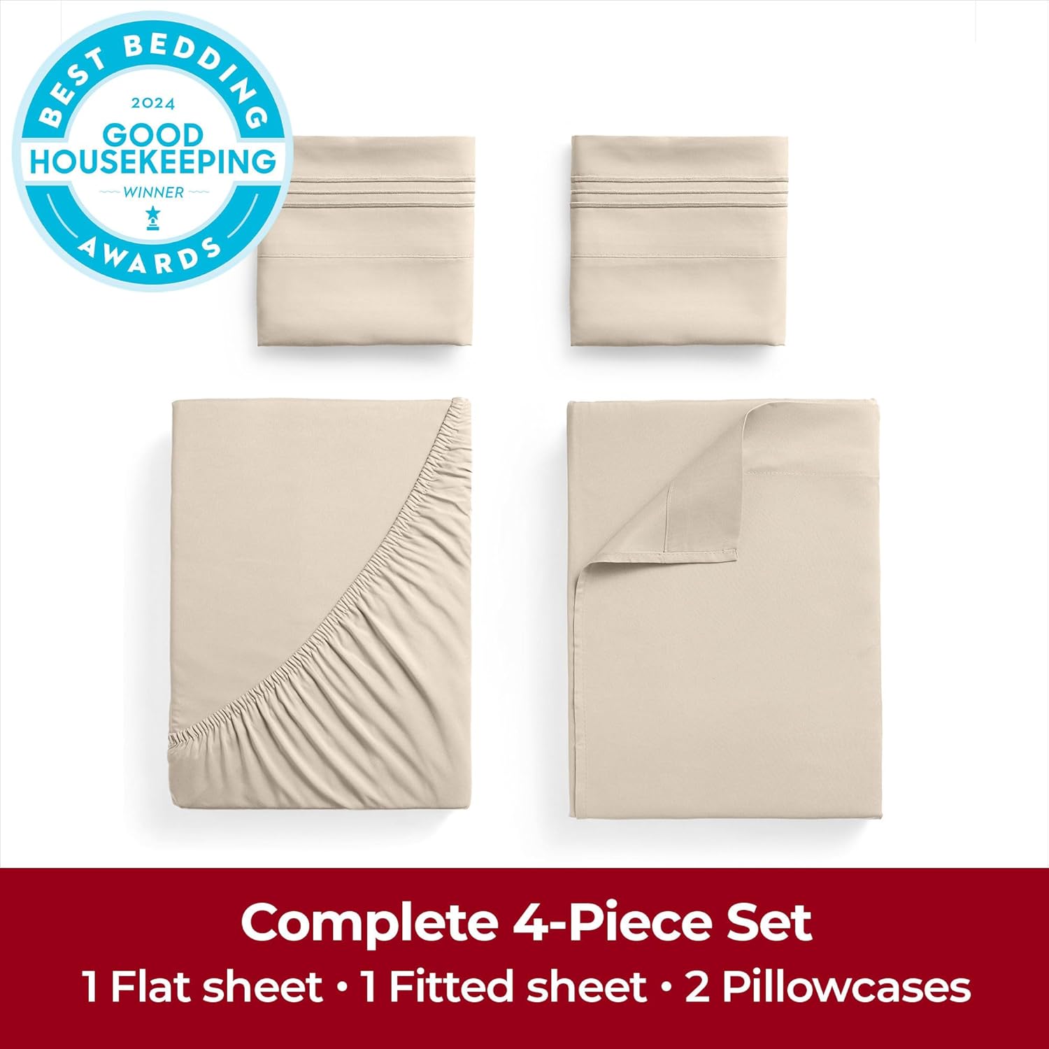 Mellanni Extra Deep King Sheets - 4 PC Iconic Collection Bedding - Hotel Luxury, Ultra Soft, Cooling Bed Sheets - Wrinkle, Fade, Stain Resistant (King, Beige)
