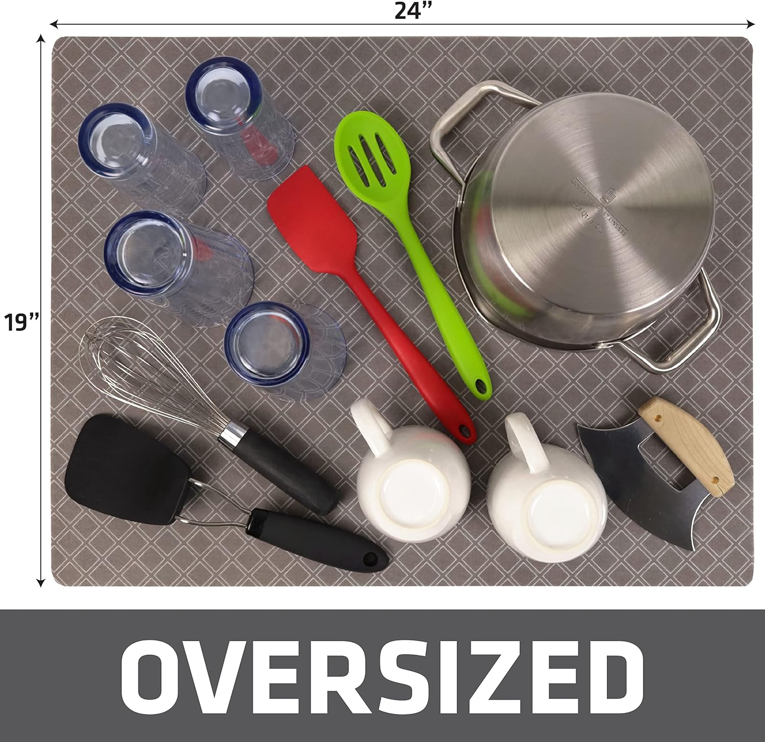 Drymate XL Dish Drying Mat, Oversized (19”x24”), Low-Profile, Super Absorbent, Quick Dry Fabric, Waterproof & Slip-Resistant, for Kitchen Counter, Trimmable, Easy to Clean (USA Made)(Taupe)