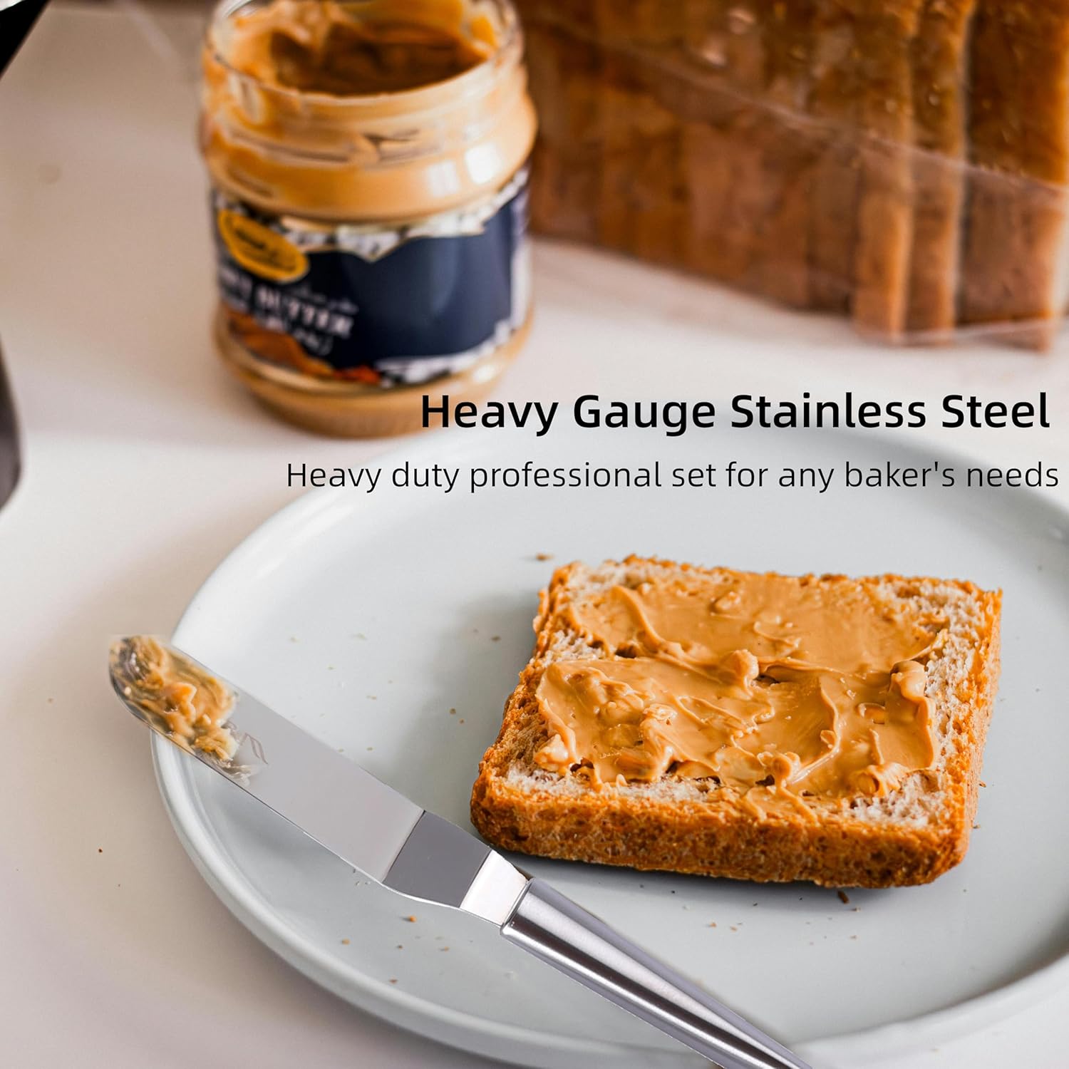 - Feature flexible and Durable high quality stainless steel blades, perfect for icing desserts, frosting pastry, cookies, crepes, pies & cupcakes, picking up and carrying cakes or pizzas, sandwiches, even cutting curds.