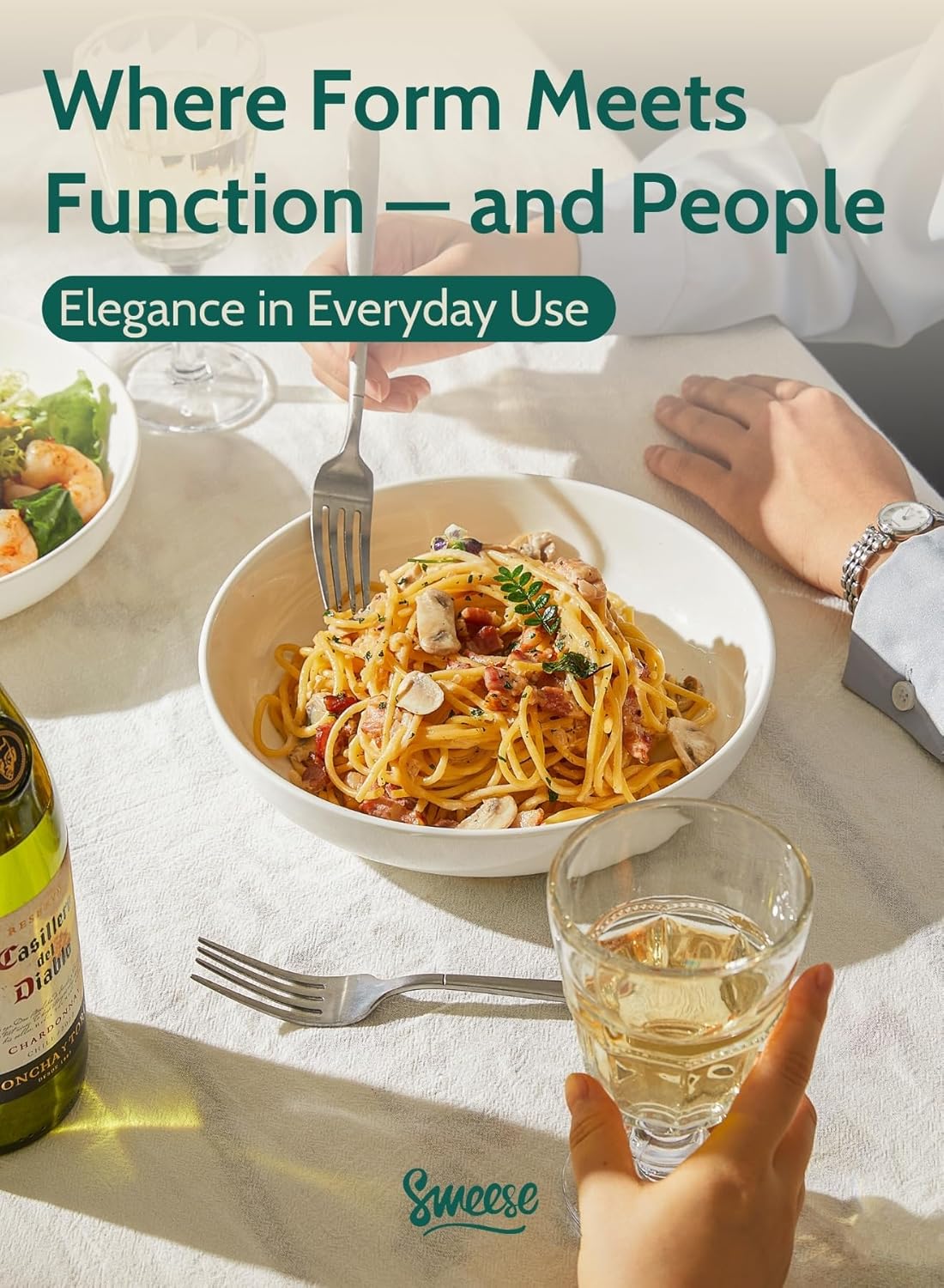 - Elevate Every Meal: Sweese presents the perfect fusion of affordability and contemporary design with our pasta bowl. Whether it's a cozy family breakfast or a lively gathering with friends, our stylish dinnerware collection enhances your dining experience on every occasion.