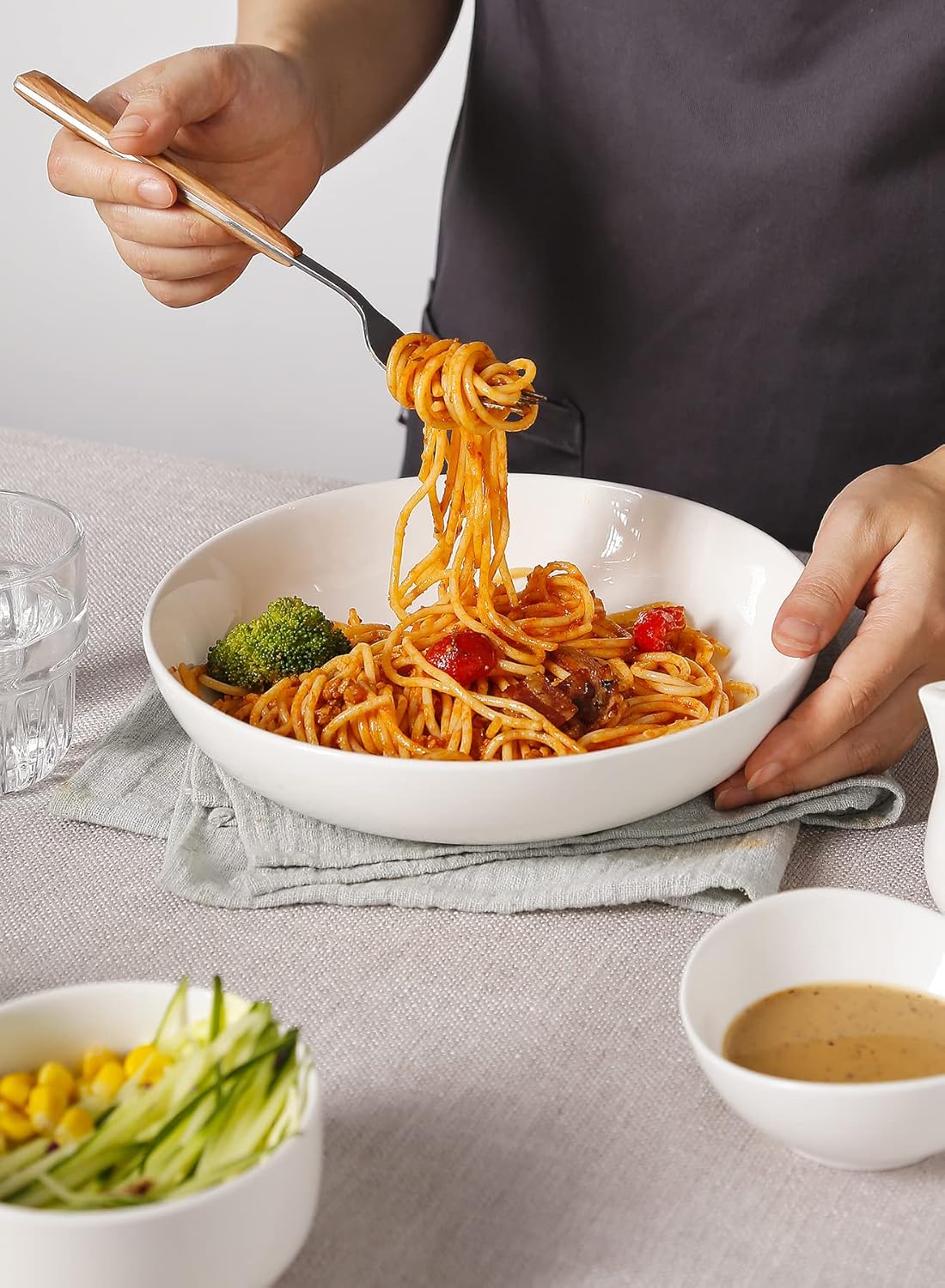 Teocera Pasta Bowls, Large Salad Bowls, Porcelain Bowl Set, Wide and Shallow, Microwave and Dishwasher Safe, 35 Ounce - Set of 4, White