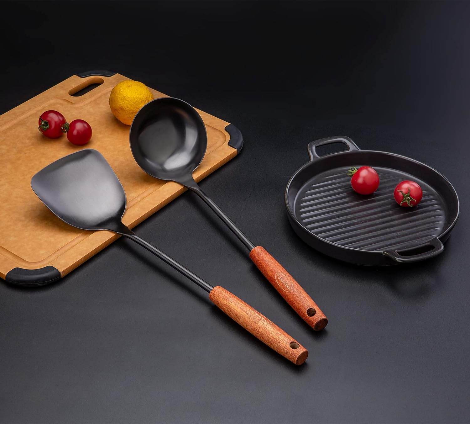 FJNATINH Spatula & Ladle Wok Tool Set, 14.2-15 inches Wok Utensils, Stainless Steel Wok Spatula