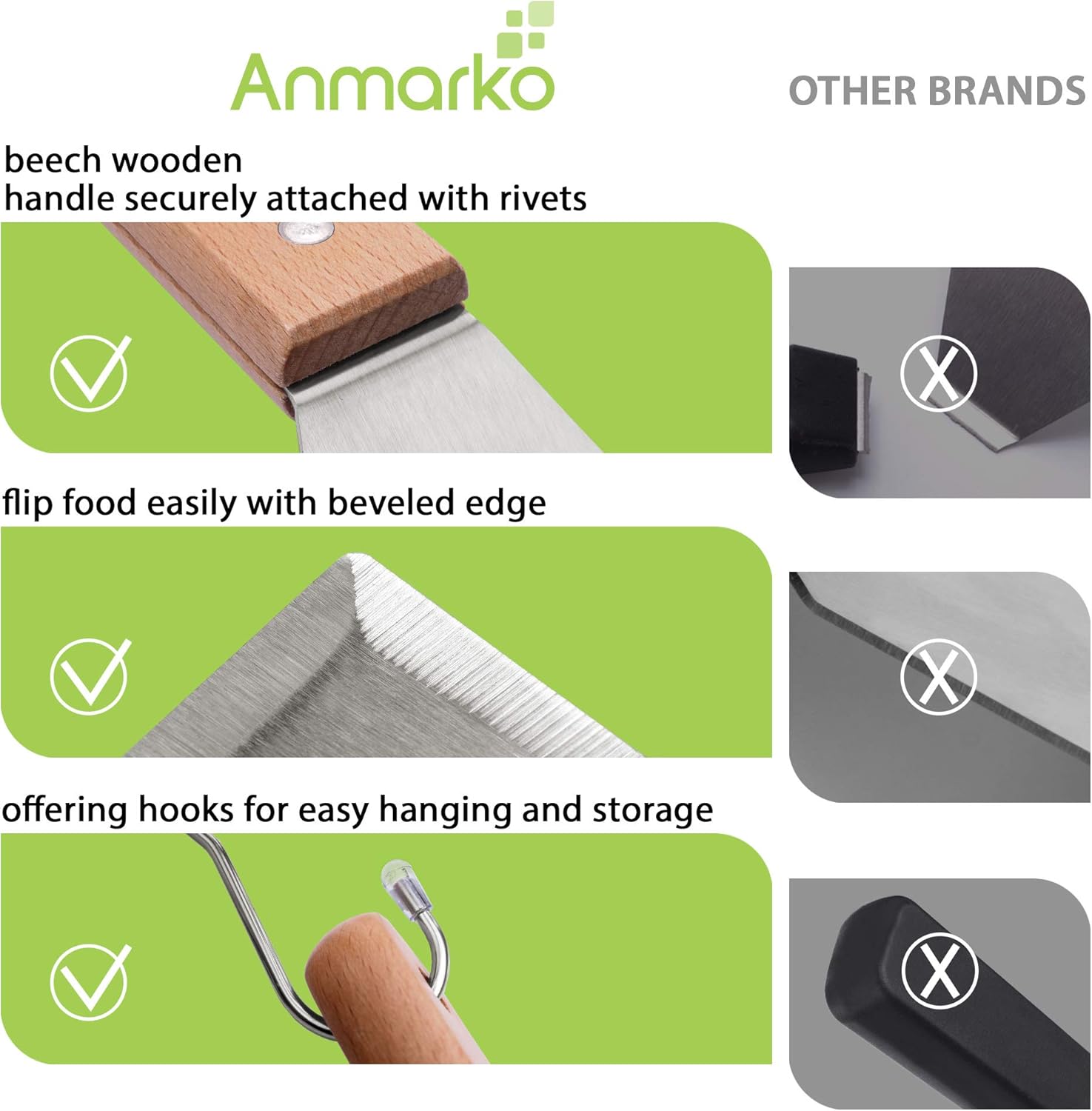 - Comfortable Firm grip - with ergonomic beech wooden handles this heavy duty commercial spatulas and griddle scraper are comfortable to hold. 2 hooks added for a comfortable storage while cooking.Handle securely riveted with a rivets. Heavy duty commercial spatulas are perfectly weighted and balanced for cooking like a chef