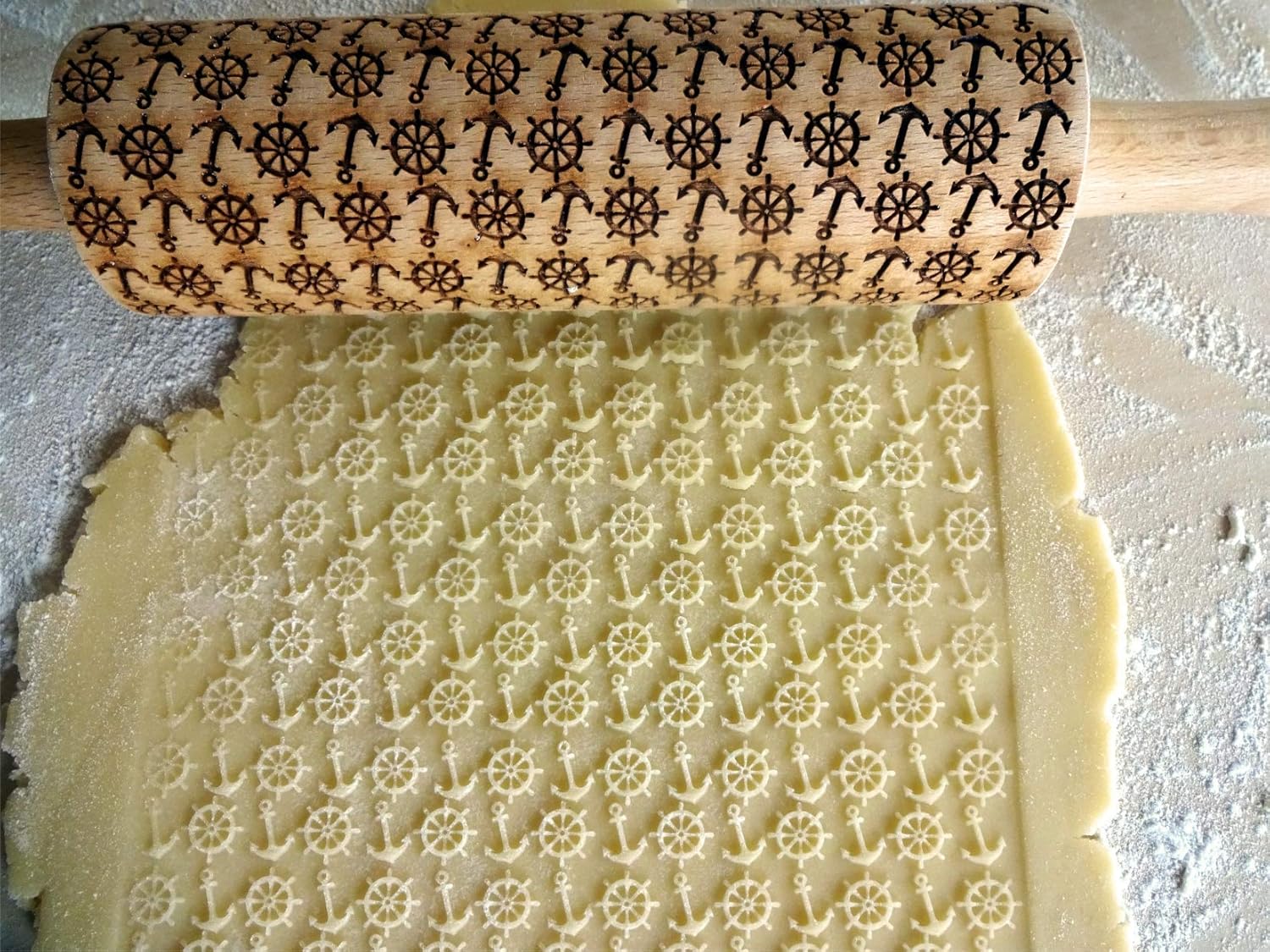 EMBOSSING ROLLING PIN MARINE LASER ENGRAVED WOODEN DOUGH ROLLER GIFT FOR FRIEND SAILOR