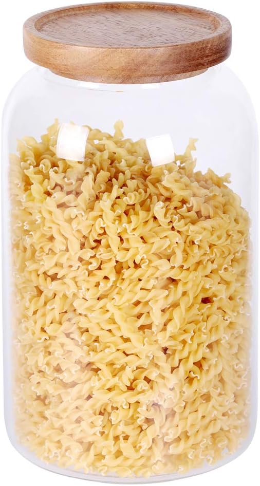 SAIOOL Modern Design Transparent Glass Food Storage jars, Food storage containers glass,100FL OZ(3000ml) Enlarged Thickened with Sealed Wooden Lid to Store Food, herbs, Tea, Easy to Use and Clean