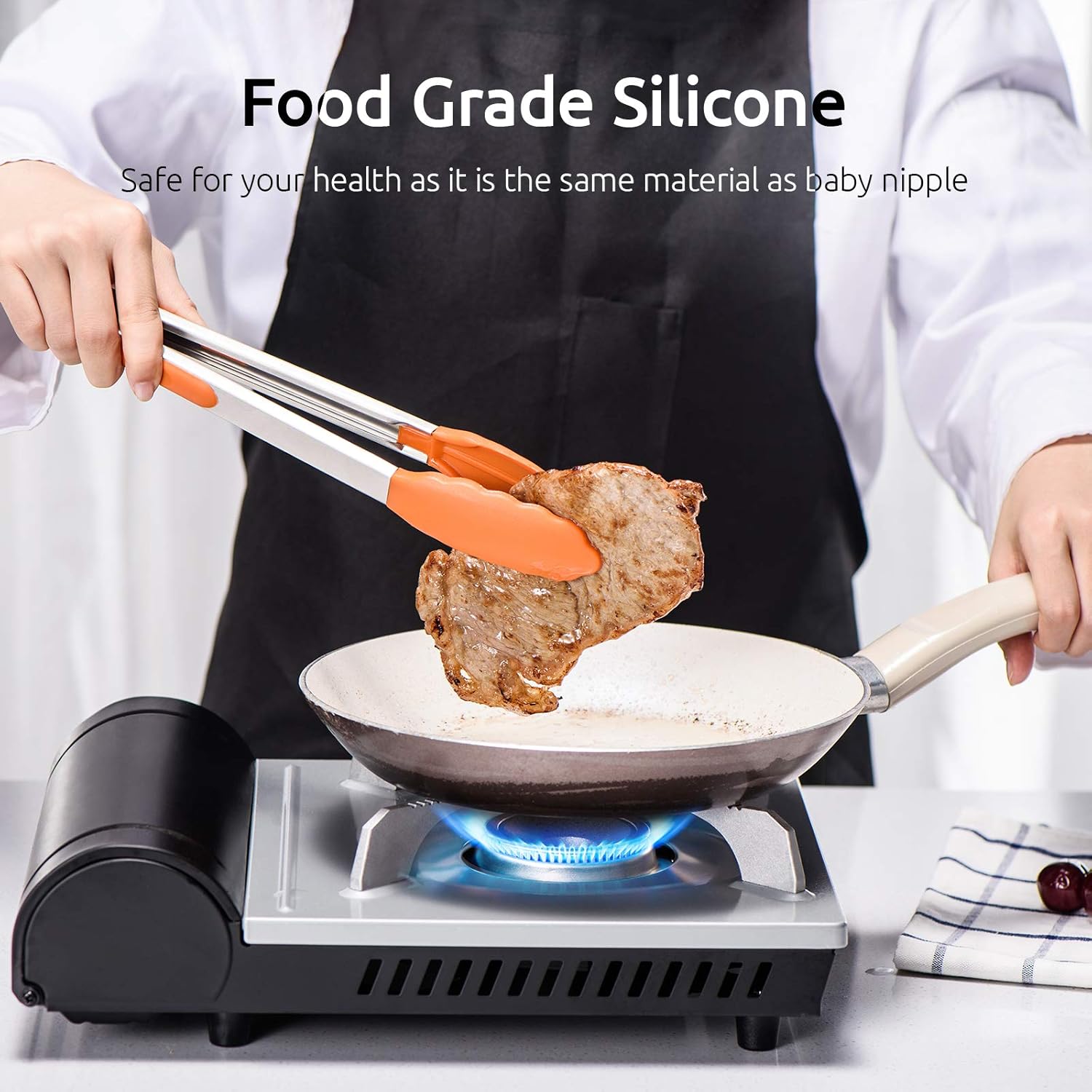 - [High heat resistant silicone tips without melting & odor] You definitely don't want tongs with metal tips to scratch your pans or tongs with inferior silicone tips that melt easily, like 24.76% persons. U-Taste upgraded the material to BPA FREE premium silicone - the same material as baby nipple, which is more durable and has higher heat resistant (up to 600°F) than the basic one. No more scratch on your nonstick pans and no rubber part of the tongs shall melt off with heat again!