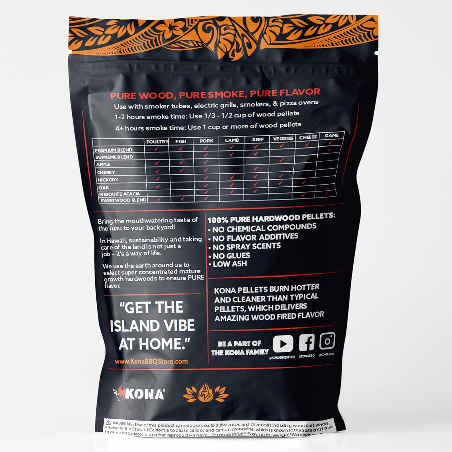 - AMAZING WOOD FIRED FLAVOR - Kona best BBQ smoking pellets variety pack provides an outstanding variety of flavors for an entire grilling season (80 uses). Only 1/3 to 1/2 cup is needed per use.