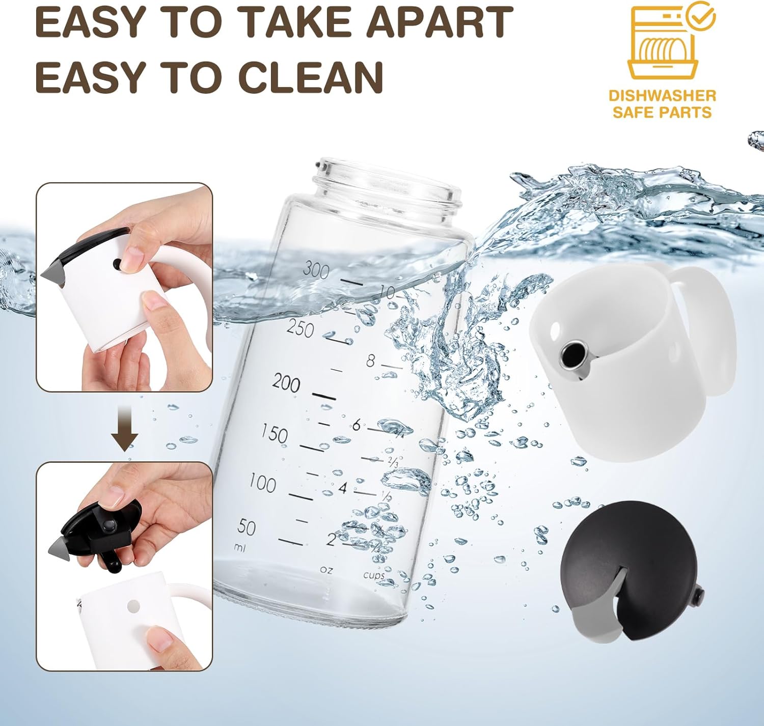 - Easy to Detach and clean - The bird lid of the oil dispenser can be detached by pressing the bird's eys. The whole oil and vinegar dispenser set can use dishwasher or water to clean. RISK-FREE PURCHASE - We do value our customers and hope you will enjoy a pleasant shopping experience. If there is any problem with our products, please contact us without hesitation and we will solve your problem asap.
