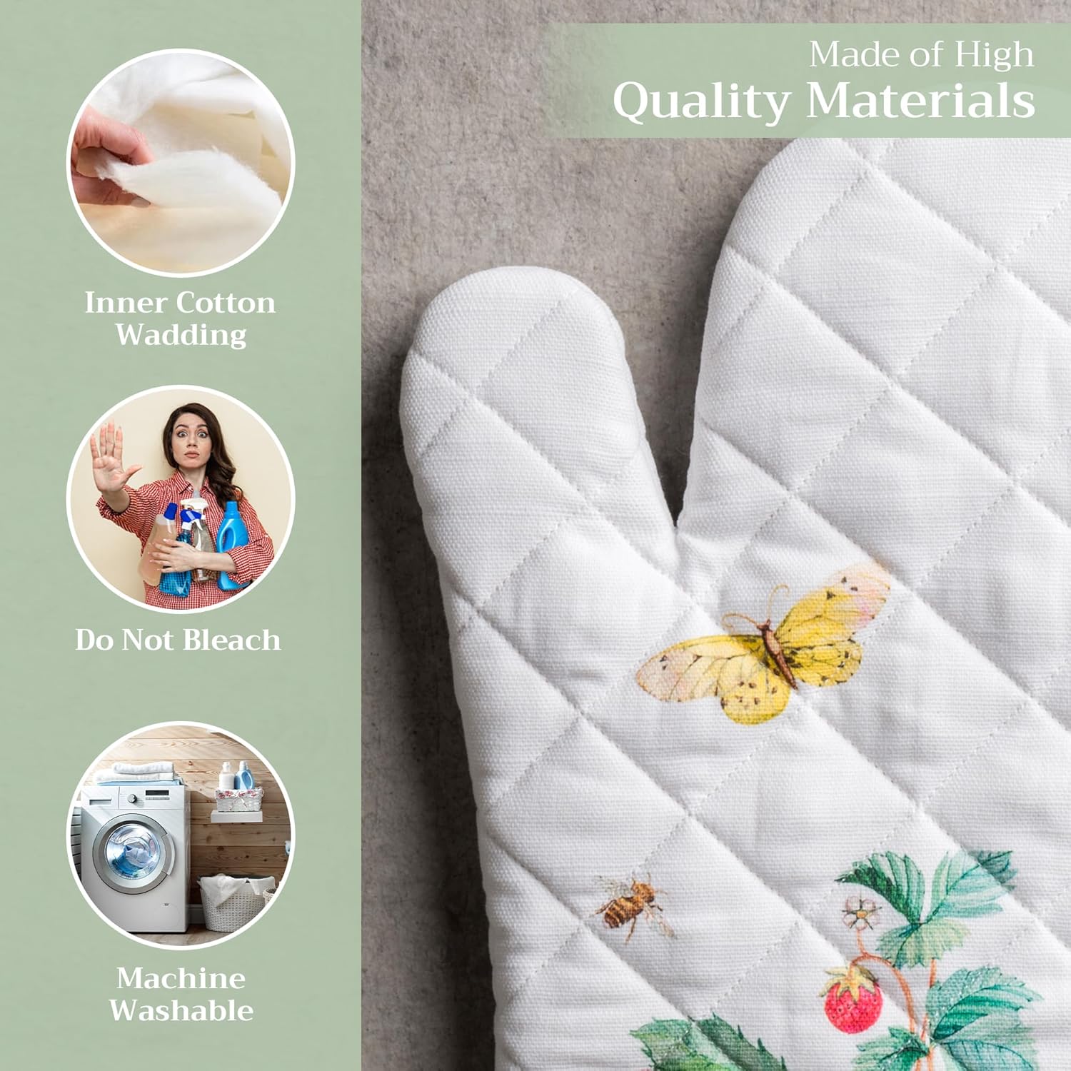 - 100% Quilted cotton: Crafted from thick, durable quilted cotton, this heat resistant oven mitt provides a soft feel, safe handling, and lasting performance. A must-have kitchen accessory for everyday cooking, roasting, or baking tasks
