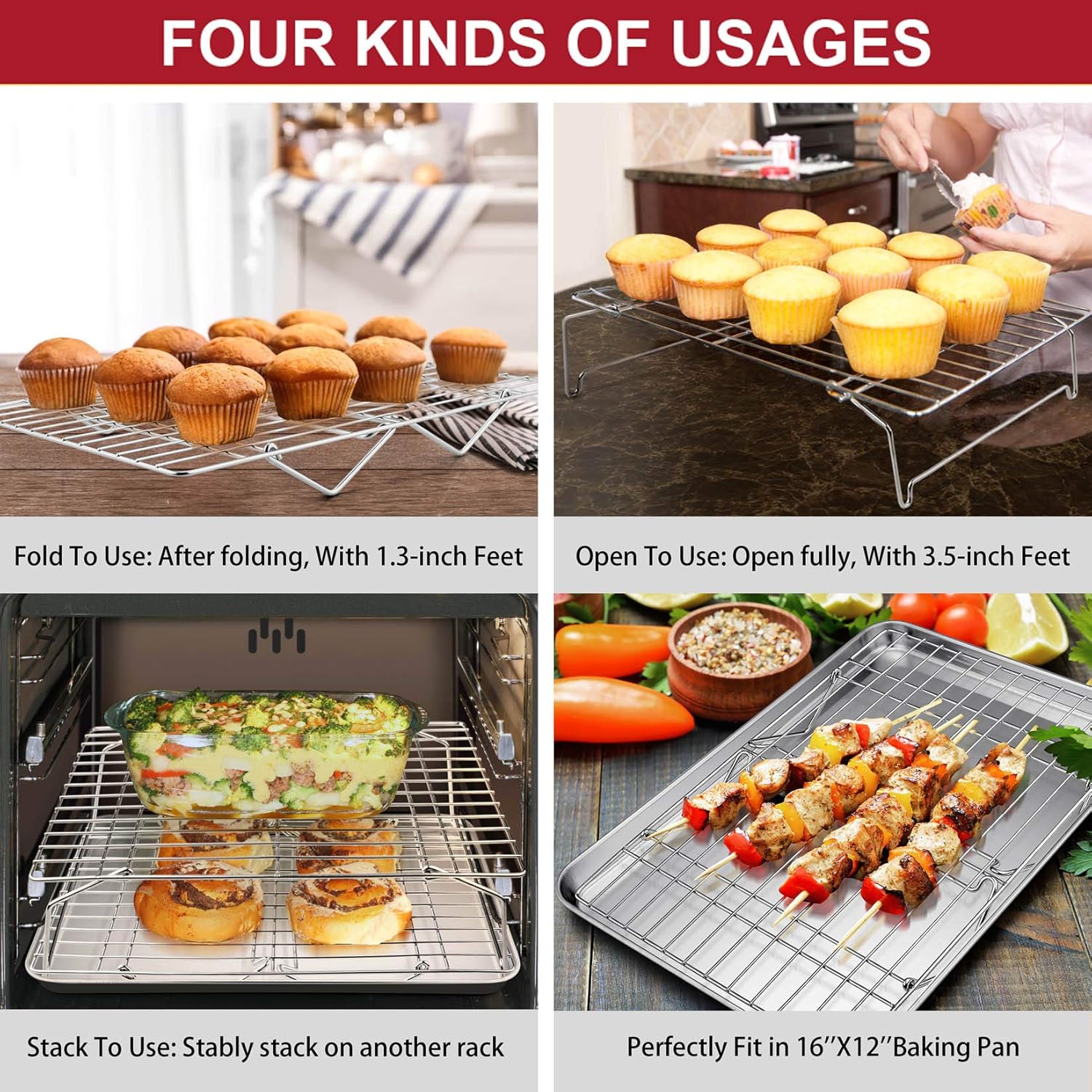 - 【MULTI FUNCTION】All pieces 15’’L x 10.2’’W, Fit in 16’’ x 11’’ or larger sheet pans, 3Pcs a set, More economical than buying them separately, Easily combined into multi-layer rack for daily use, Greatly applicable to Cooling Pastries, Baking Meat and Poultry, Dehydrating Pork /Beef Jerky, Draining Grease and Water,etc.