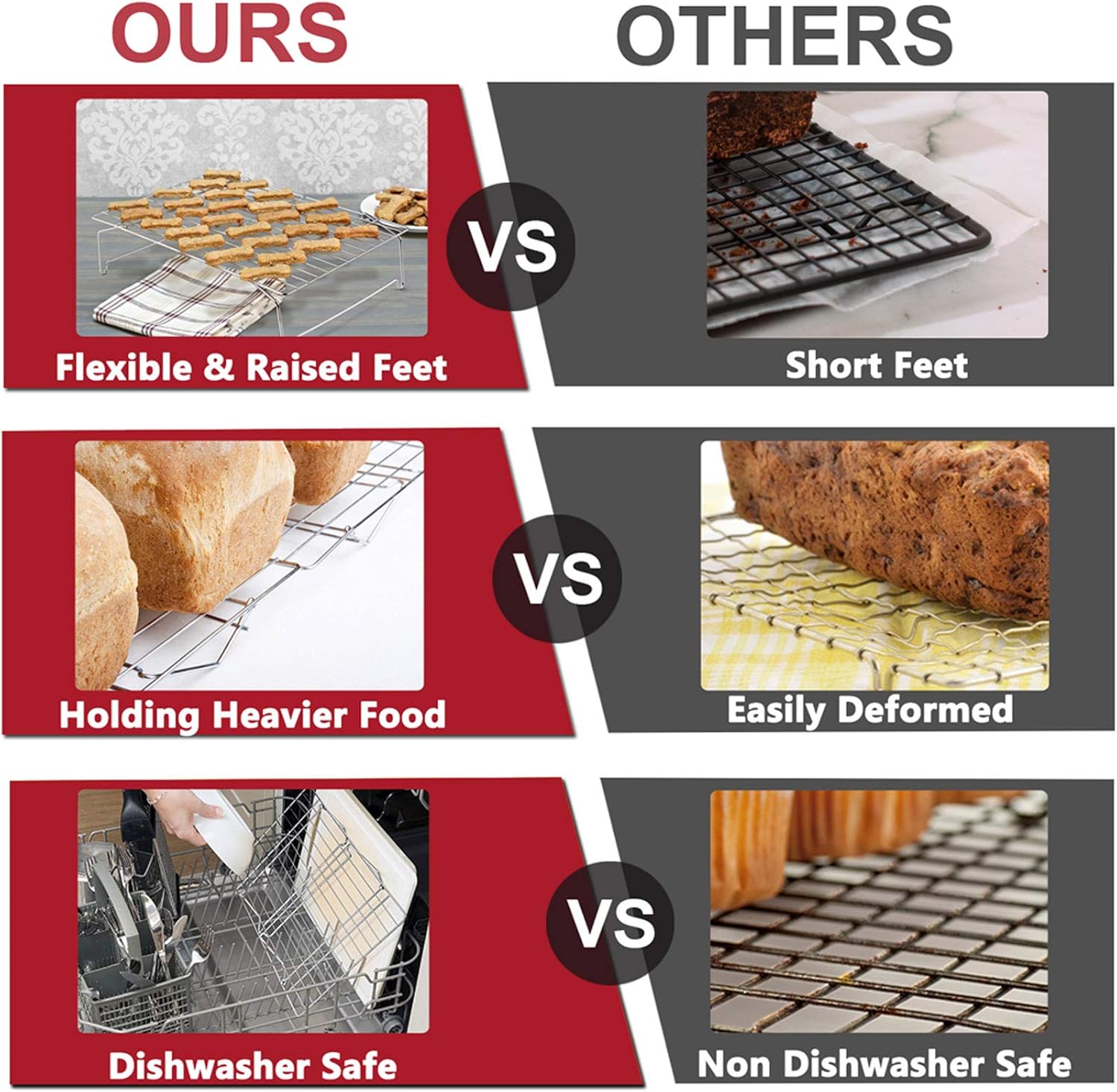 - 【EXQUISITE CRAFT】 The wires with solid seamless welding, Not easy to fall out, Densely welded to keep food from falling through, The feet with the arc design help the cooling rack stand stably without sliding, Smooth edges roundly protect your hand, Mirror finished surface always keep a shiny appearance