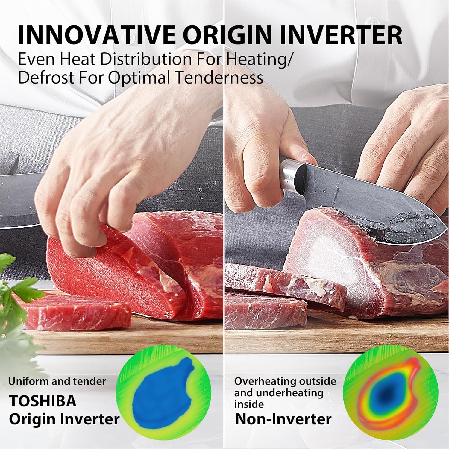 - ăOrigin Inverter TechnologyăInverter technology provides even heating and defrosting, enables faster cooking and more satisfying user experience; also inverter microwave is lighter compared with same size microwave.