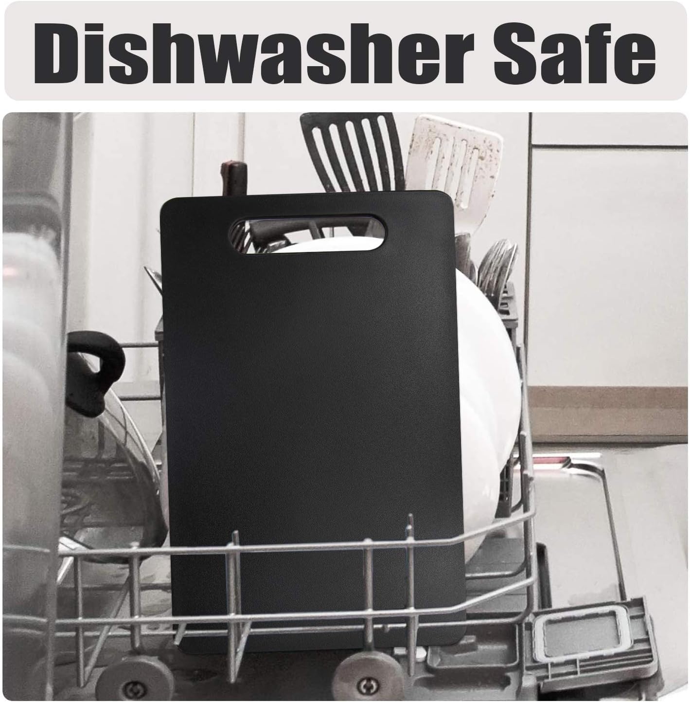 Fotouzy Plastic Utility Cutting Board with Handles, Food Safe PP Material, BPA Free, Dishwasher Safe, Thick Chopping Board, Large Size, Easy Grip Handle, for Kitchen (Black)