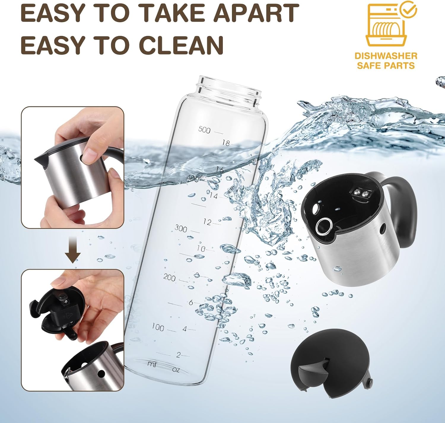 - No-Drip Spout & Leak-Proof Kitchen Bottle - Unique spout with clear measurements labeled on the glass bottle to greatly avoid dripping and you can better control the amount of oil and no worry about over dressing.