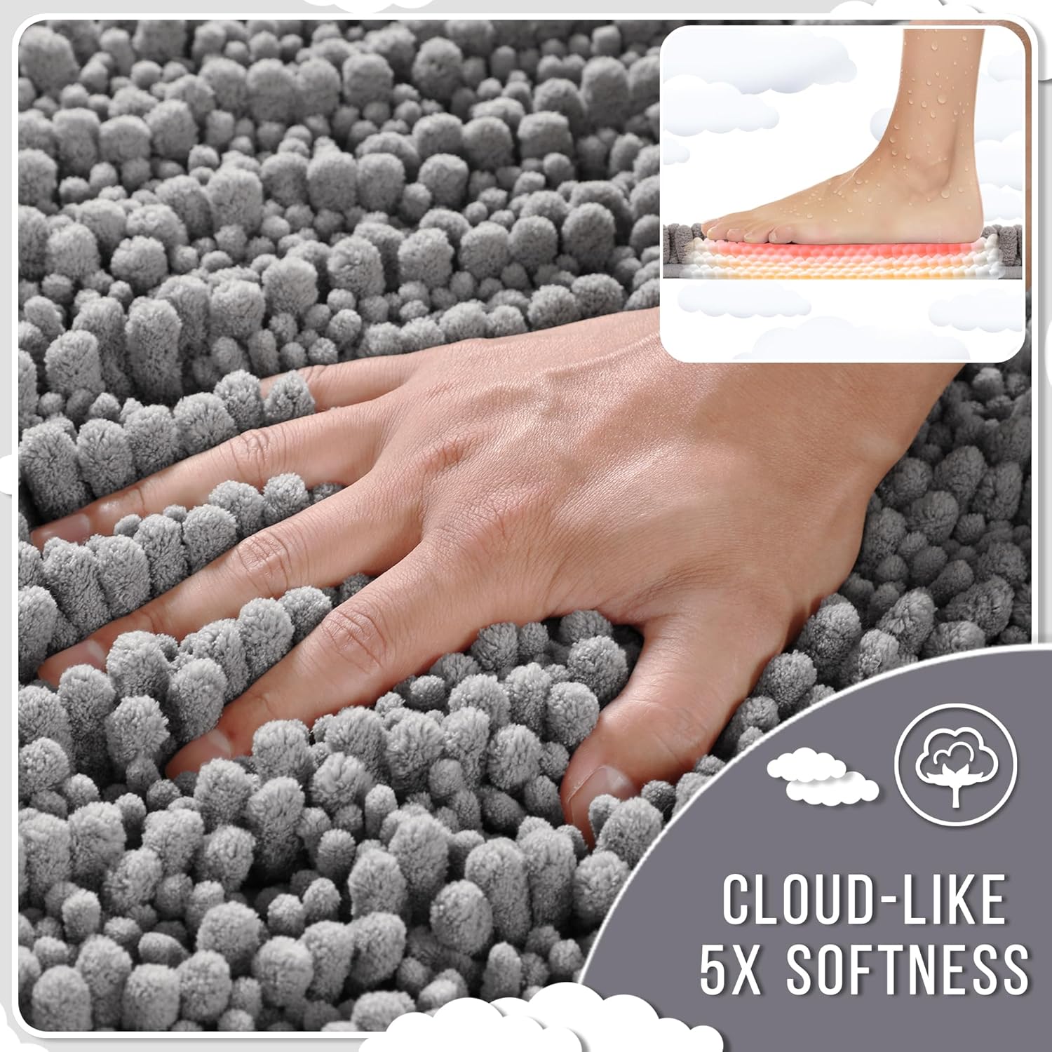 Yimobra Large Bathroom Rugs Non Slip Washable 36x24 Inch - Ultra Soft Absorbent Chenille Bath Mat, Quick Dry Shaggy Floor Carpet for Tub Shower, Gray Home Decor Accessories