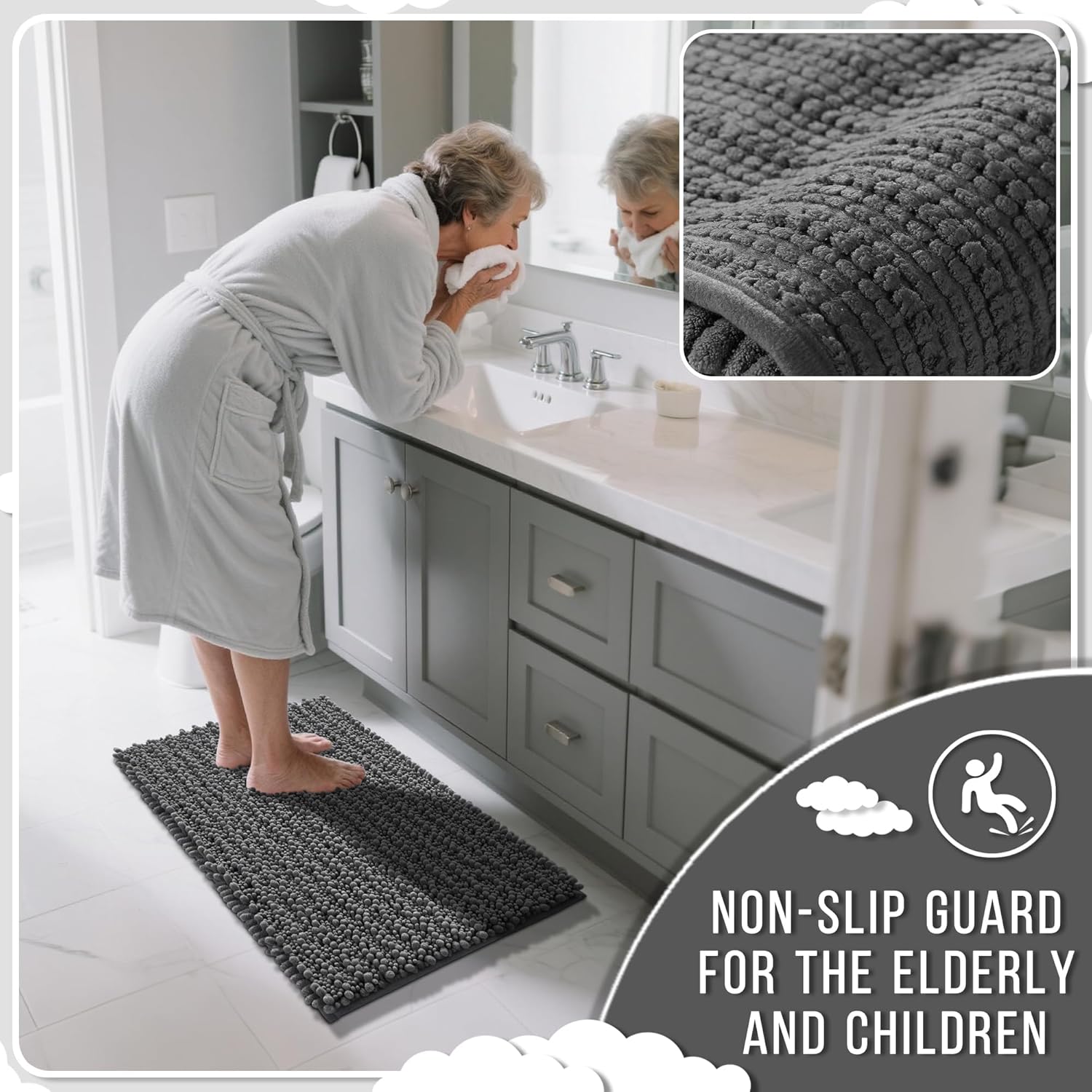 Yimobra Bathroom Runner Rug 60x24 Inch - Extra Long Non Slip Chenille Bath Mat, Soft & Absorbent, Machine Washable Shaggy Hallway Carpet for Vanity Tub Shower, Dark Gray Home Decor Accessories