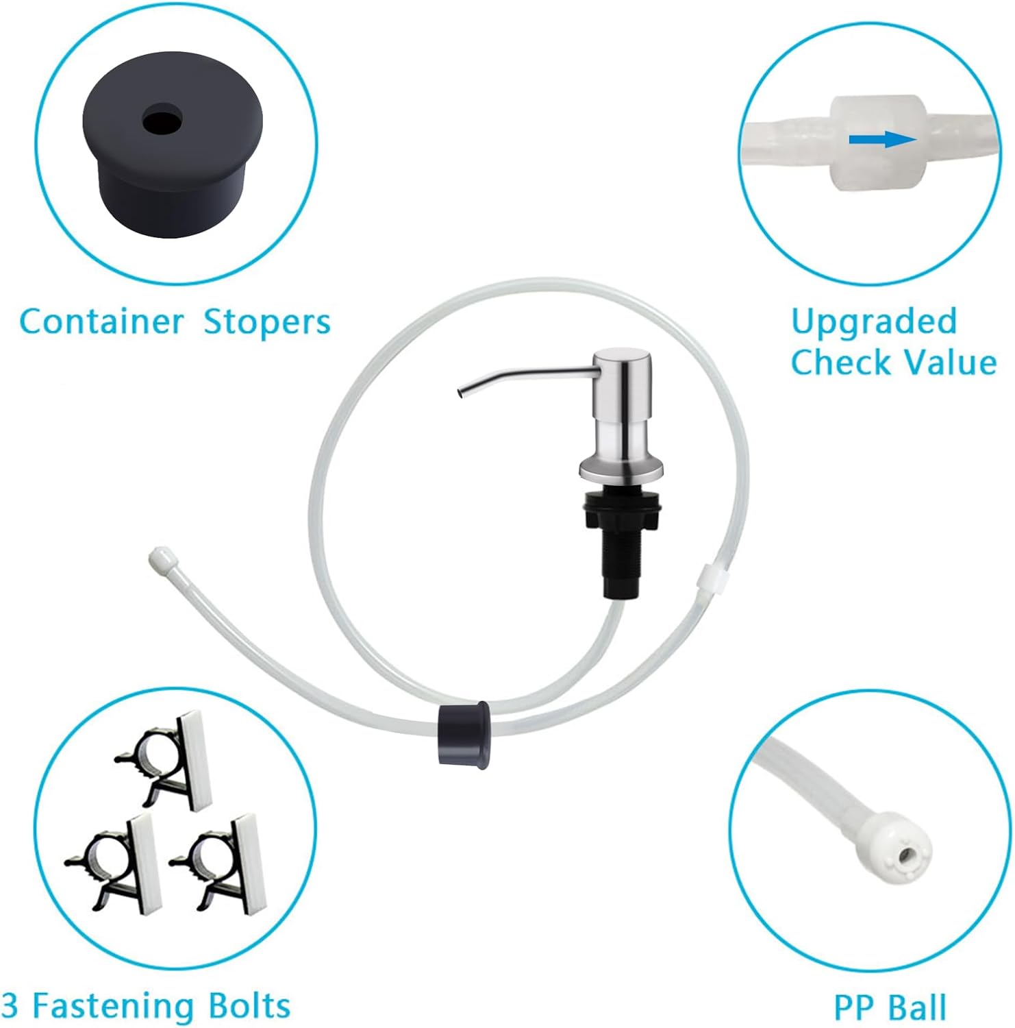 Kitchen Sink Soap Dispenser, Brushed Nickel Countertop Soap Dispenser Pump, 47" Silicone Extension Tube Connect to The Soap Bottle Directly, Say Goodbye to Frequent Refills