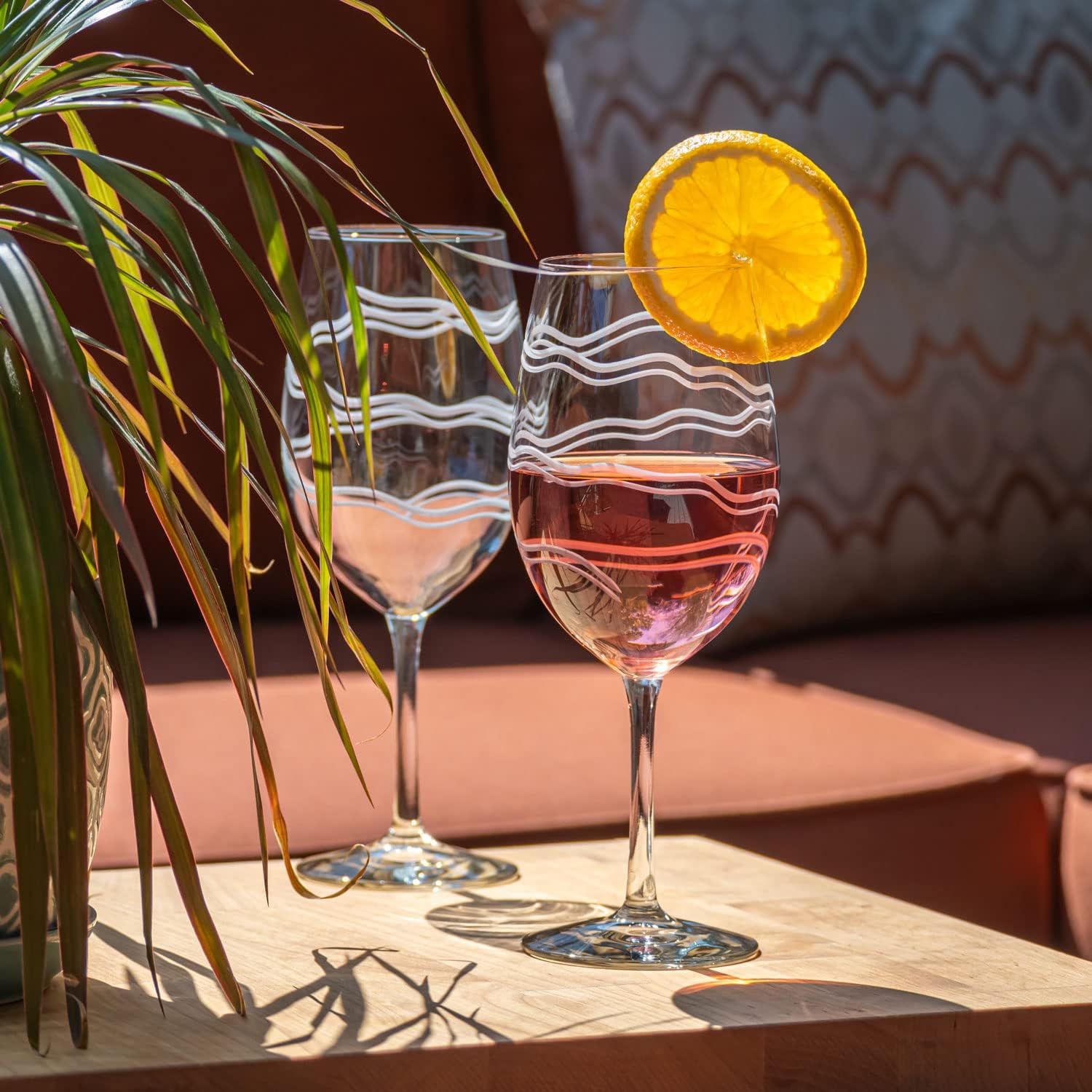 Rolf Glass Good Vibrations All Purpose Wine Glass | Set of 4 Large 18oz Wine Glasses | Lead-Free and Diamond-Wheel Engraved | Proudly Made in the USA | Spiral Etched Glass