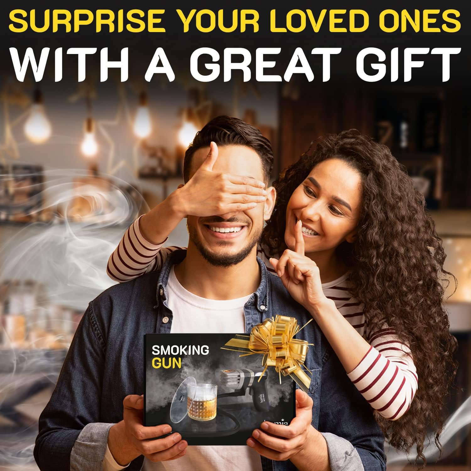 - 🔥 MULTIPURPOSE & GREAT GIFT - Cocktail, Whiskey, Meat, Fish, Cheese - add a smoky flavor to virtually any food or Cocktail. This Cocktail Smoker brings your weekend to new heights and makes you feel like a professional mixologist and chef. It also makes a useful gift for men for any close person in your life. Excellent gift choice for Father`s day and other occasions: Birthday, Father`s Day, Anniversary, Valentine's Day, Thanksgiving, Christmas, etc.