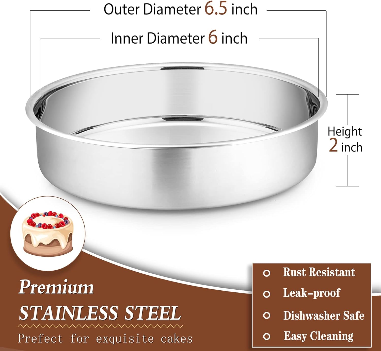 - 【6 INCH - 3PCS】 With 6-inch dimension, 2-inch height, These cake pans are ideal for baking cakes, brownies, quiches, breads, meat, Perfect size fits for steaming in pressure cooker / stockpot, A good choice for serving fruit / snacks / nuts, Great gift for friends who love making cakes